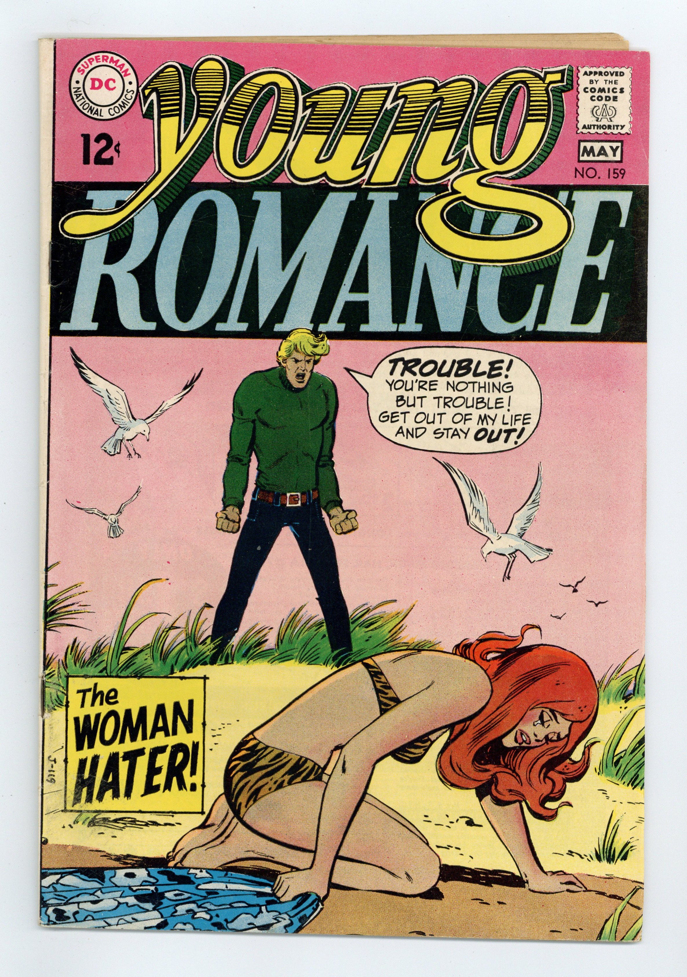 Cover by Bill Draut. Stories by unknown. Art by Bill Draut, Win Mortimer & Vince Colletta, Jay Scott Pike and unknown. Two very different girls try to break through the antagonistic attitude of a reclusive lighthouse keeper, and one succeeds in "Love Put Out the Light"! Plus: Marriage and a first child have not made Maria happy -- she thinks that the romance is gone between her and Billy in "Enter Marriage...Exit Romance!" Also: Mad Mad Modes for Moderns 2-pager "[When it's time to turn on with your fave tiger...]"! And: Judy meets Andy accidentally when their respective dates are unable to make it. They spend one evening together, but go back to their previous relationships, each thinking (mistakenly) that the other isn't interested in the reprint story "Ring of Gold"! Plus: Laura Penn...Your Romance Reporter letters page. 32 pages, full color. Cover price $0.12.