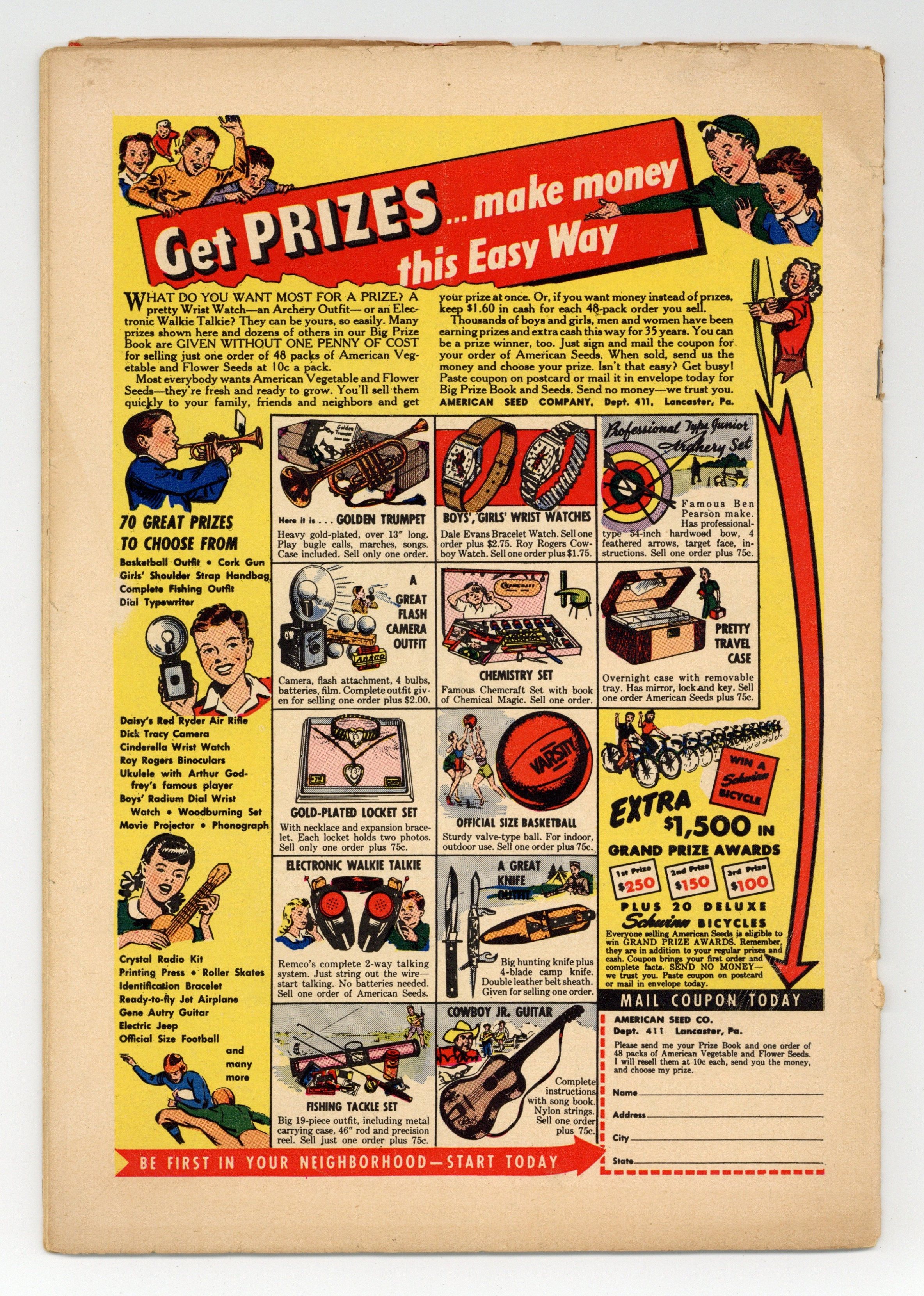 "Gay Blades," pencils by George Frese; Betty conspires with a reluctant Jughead to break Archie and Veronica up at the ice skating pond. "Hunger Pains," art by Samm Schwartz; Suzie trades one-liners with a hobo looking for a handout. "The Apple Chump-Ling"; Archie swipes some apples from Jughead to give to Veronica so she can pass her Home Economics baking class. "Insufferable Pals"; Veronica breaks a date with Archie to go out with another boy; Betty at first refuses to be Archie's second choice, but then decides to date him. "Tomato Surprise"; When Jughead hears Betty and Veronica are buying fresh tomatoes for tomato sauce, he volunteers to make his family's special recipe sauce for them. "Ski Sick," art by Harry Lucey; When the boys spurn the girls' request to show them how to ski, the girls decide to go skiing anyway. 36 pgs., full color. $0.10. Cover price $0.10.