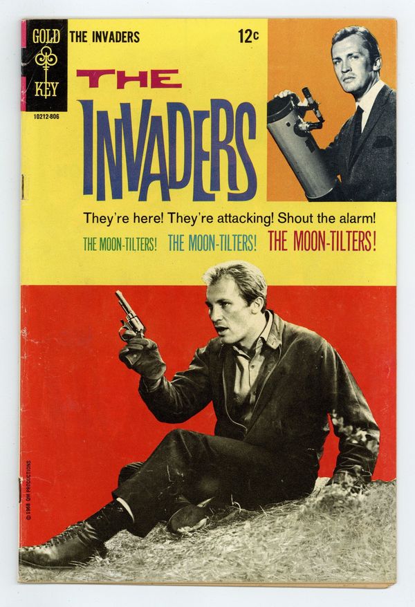 $18.5012¢ version with ad on back cover. Number/month on cover: 10212-806, no month listed. Comic book version of the 1960s TV series about one man's crusade to convince people that an advance guard of alien creatures had infiltrated the world's population and were preparing to conquer Earth. This issue features "The Moon-Tilters" in which David Vincent battles an alien plot to make the waters rise and drown the Earth. Issue also has some gag strips. Photo cover. Story credits: unknown. Art by Dan Spiegle. Cover price $0.12.