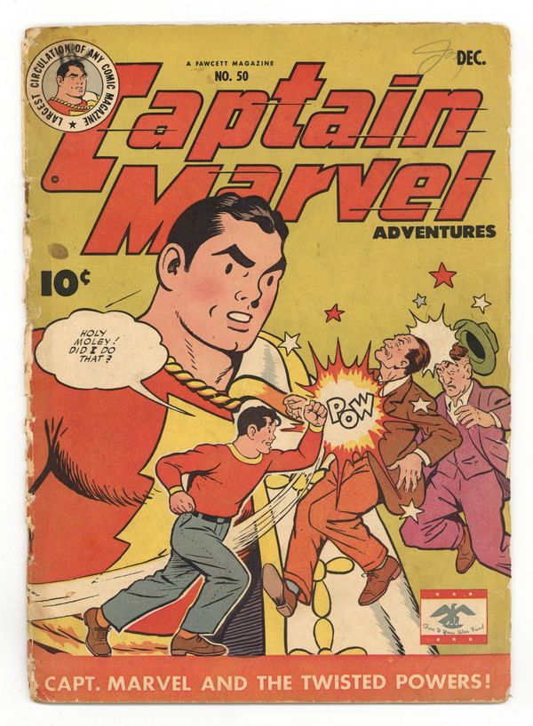 Cover by C.C. Beck and Pete Costanza. Stories by Otto Binder. Art by Pete Costanza and C.C. Beck. Captain Marvel's powers have vanished, but Billy Batson seems to have them in "The Twisted Powers" by Otto Binder and Pete Costanza. Captain Marvel also stars in "Villain's Valhalla" by Otto Binder and Pete Costanza, and "Sivana's Crime Newspaper" by Otto Binder, C.C. Beck and Pete Costanza. Plus: 2-page National War Fund text story "School Teacher Captures German Town." 36 Pages, Full Color. Cover price $0.10.