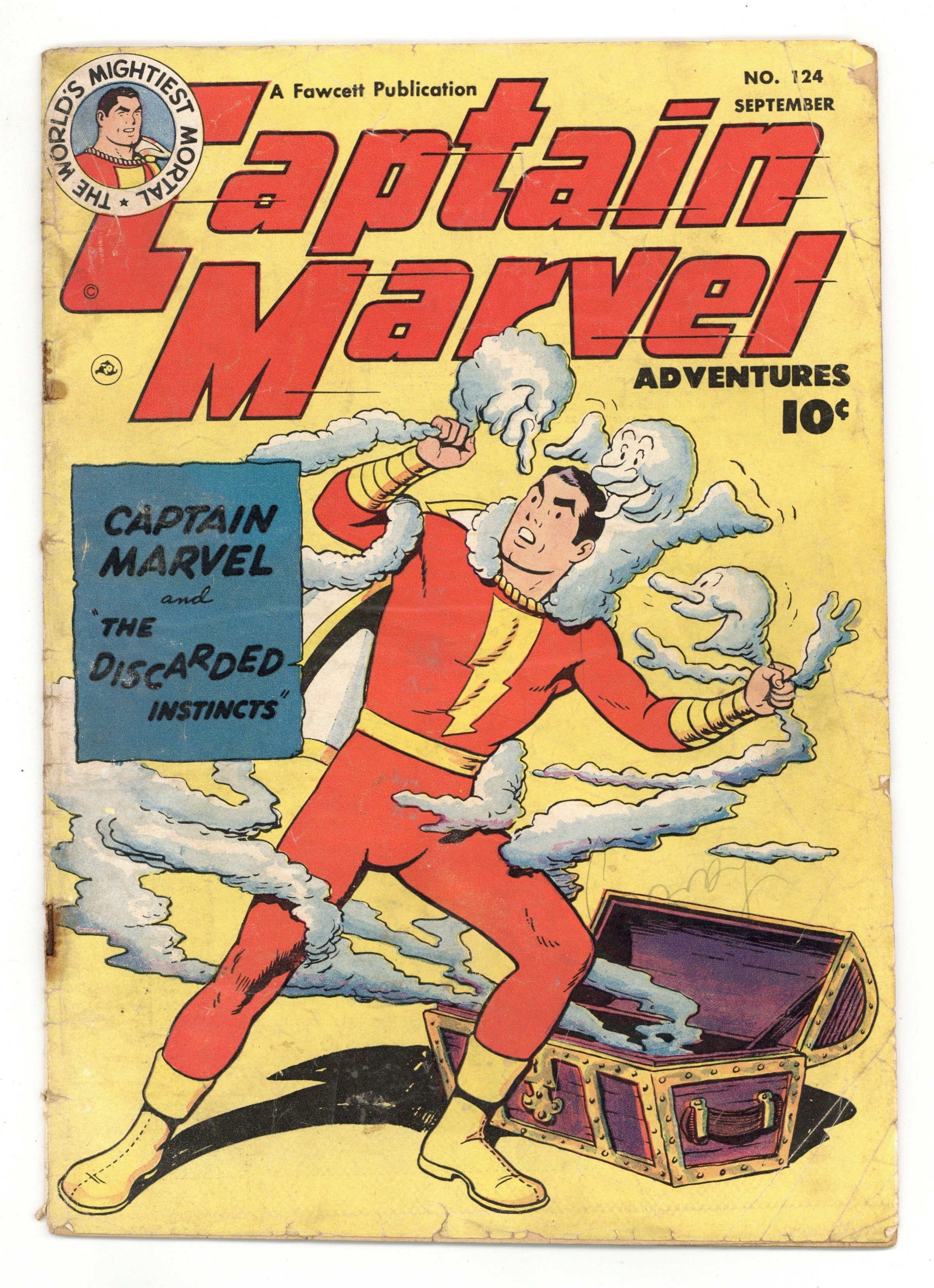 Cover by C.C. Beck. Stories by Otto Binder and unknown. Art by C.C. Beck and unknown. Captain Marvel (Billy Batson) stars in: "Captain Marvel Battles the Discarded Instincts" with story by Otto Binder and pencils by C.C. Beck; "Captain Marvel Battles the Unknown Danger" by Otto Binder and C.C. Beck; and "The Strange Time Circus" with story by Otto Binder (appearances by Don Quixote, Daniel Boone and Doc Wunder). Plus: Captain Kid in "The Wild Beast"! And: Jon Jarl in the 2-page text story "The Television Trap" by Otto Binder (as Eando Binder). 36 Pages, Full Color. Cover price $0.10.