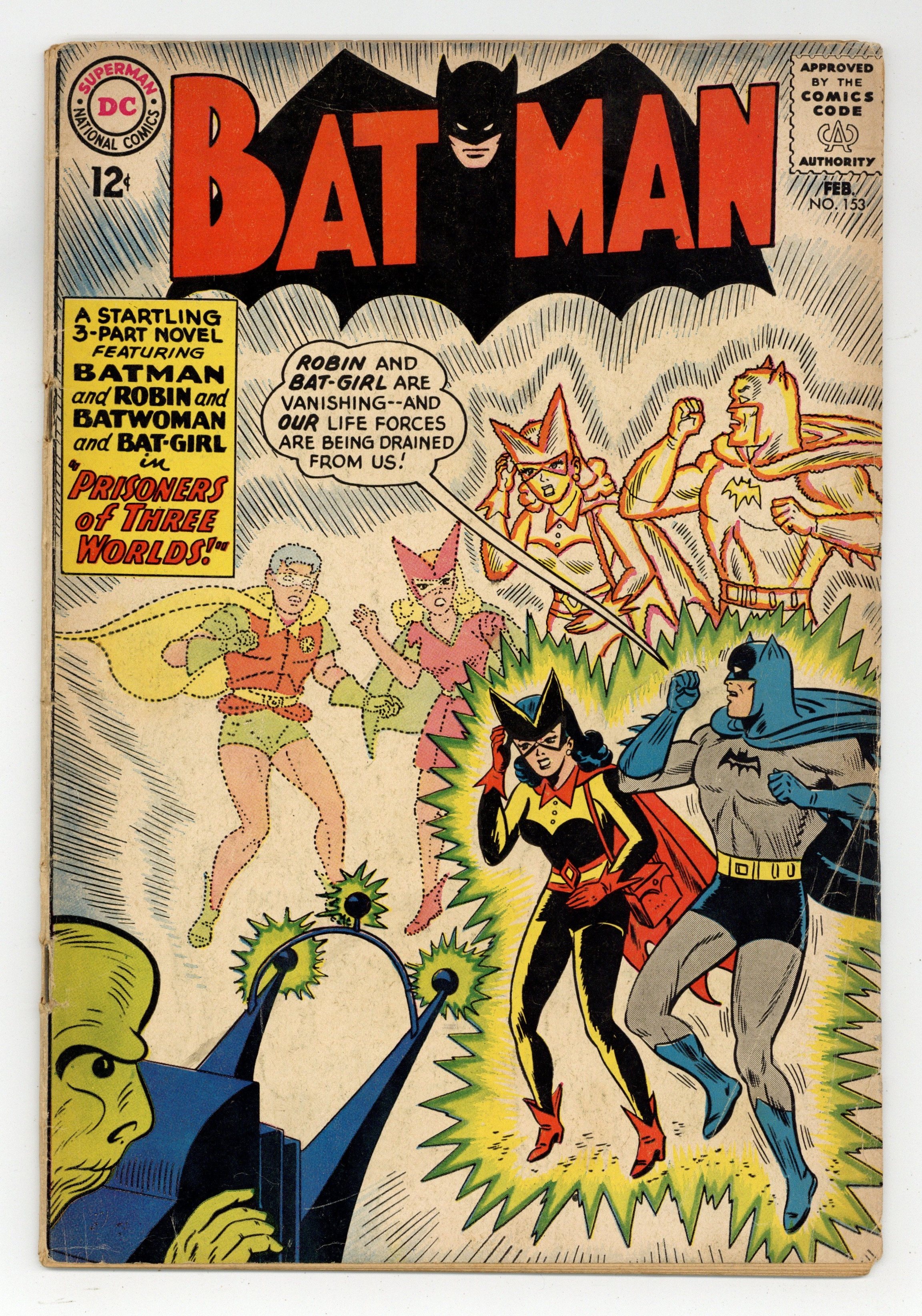 Cover by Sheldon Moldoff. "Prisoners of Three Worlds," script by Bill Finger, pencils by Sheldon Moldoff, inks by Charles Paris; A strange alien arrives on Earth and begins stealing silver; When our four heroes begin pursuing him, they are all transported to different dimensions. True Crime Laffs humor/non-fiction page by Henry Boltinoff. Health Myths Debunked! public service announcement, script by Jack Schiff, art by Sheldon Moldoff. Half-page Shorty story by Henry Boltinoff. 36 Pages, Full Color. Cover price $0.12.