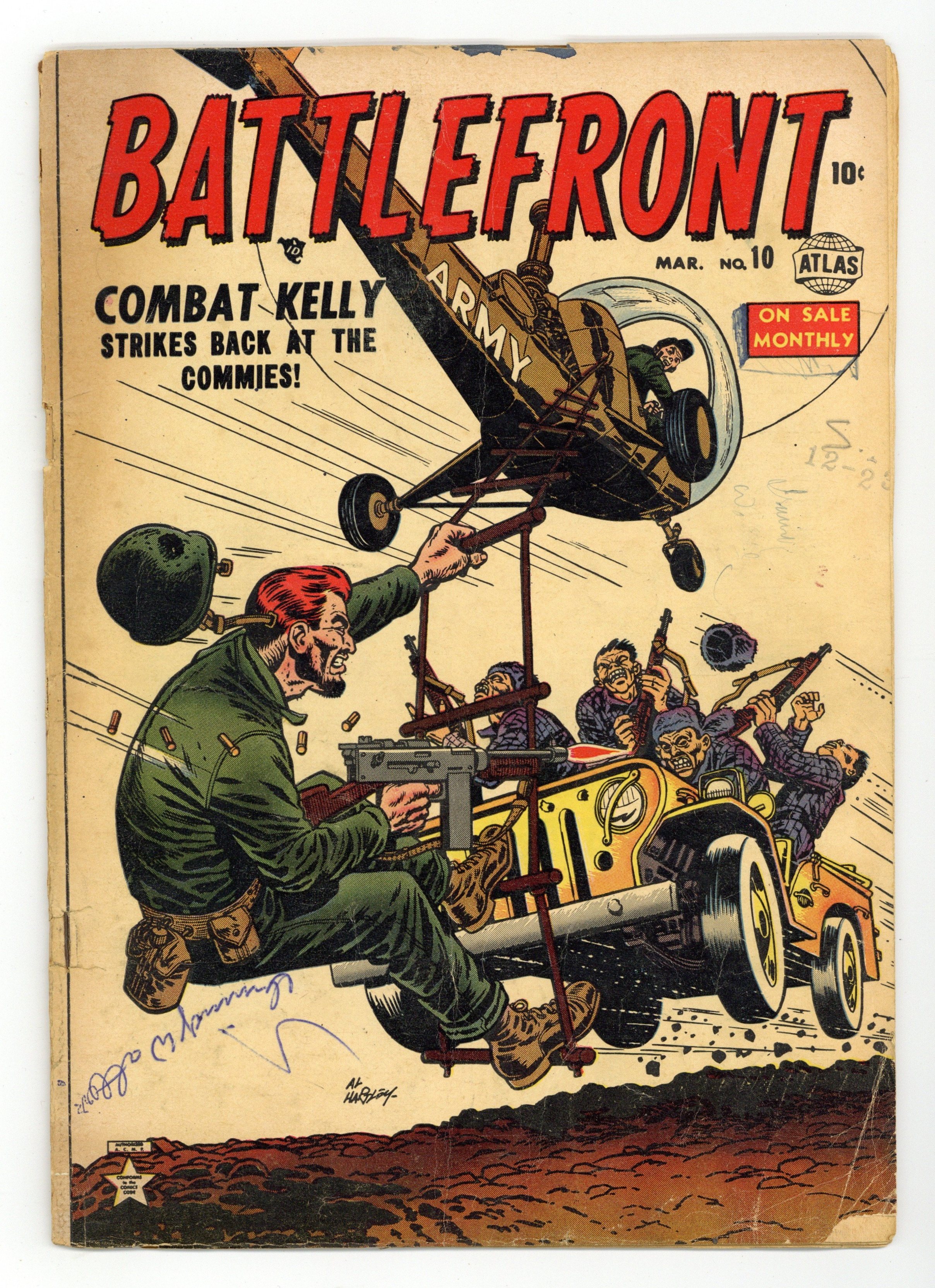 Cover by Al Hartley. Written by Hank Chapman, Carl Wessler, Paul S. Newman and unknown. Art by Al Hartley, John Romita, Sr., Louis Ravielli and Eddie Robbins. Combat Kelly stars in an untitled story by Hank Chapman and Al Hartley. Plus: "Bunker Hill" by Carl Wessler and John Romita, Sr.; "Artillery" by Paul S. Newman and Louis Ravielli; "The Idol" with art by Eddie Robbins; and 2-page text story "Brown's Bravery!" 32 pages, full color. Cover price $0.10.
