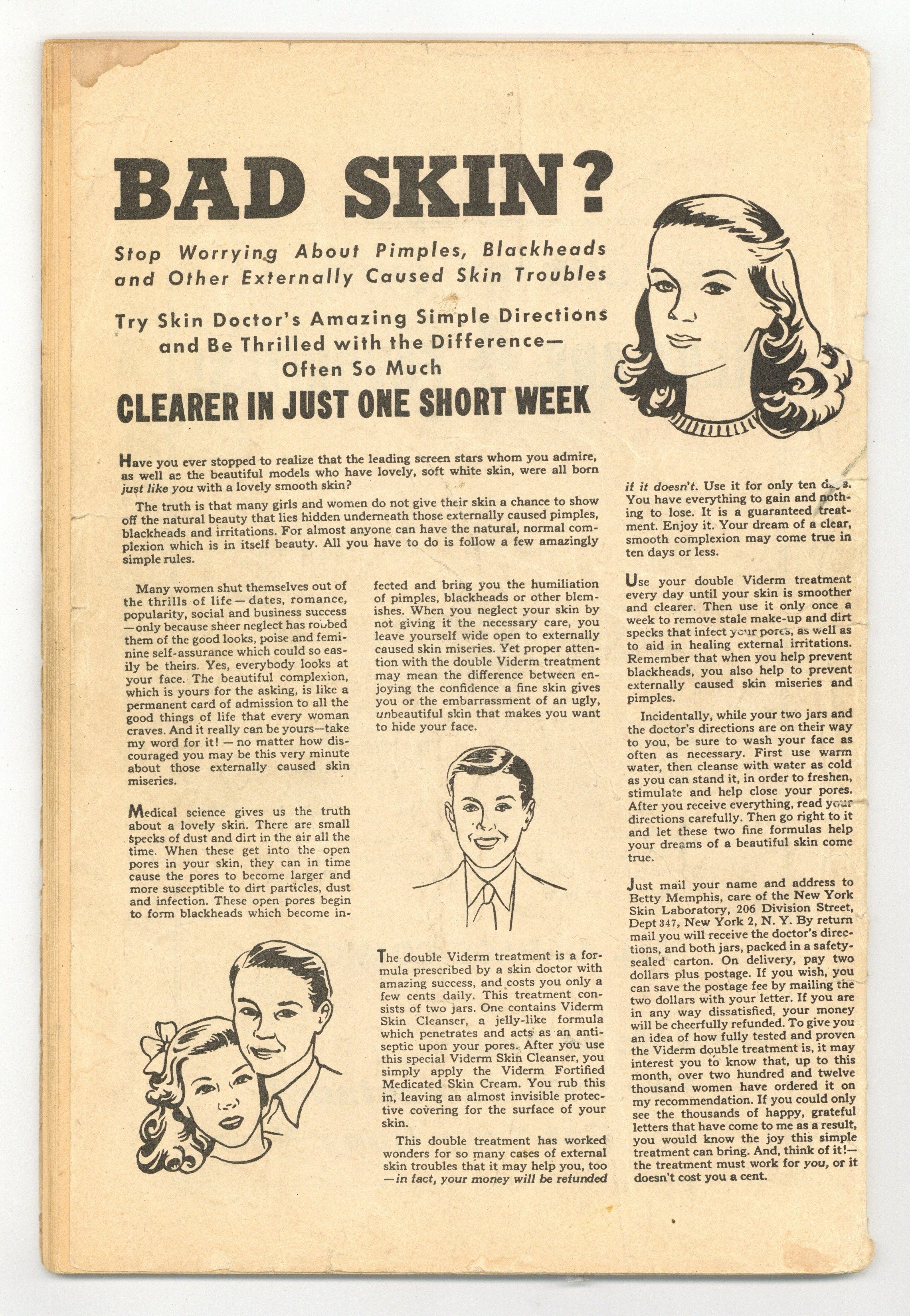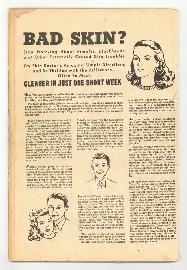 Published 1948 by Ace Magazines.$70.00- 1" cumulative spine split. Lateral spine tears. Centerfold detached at one staple. Water spotting.