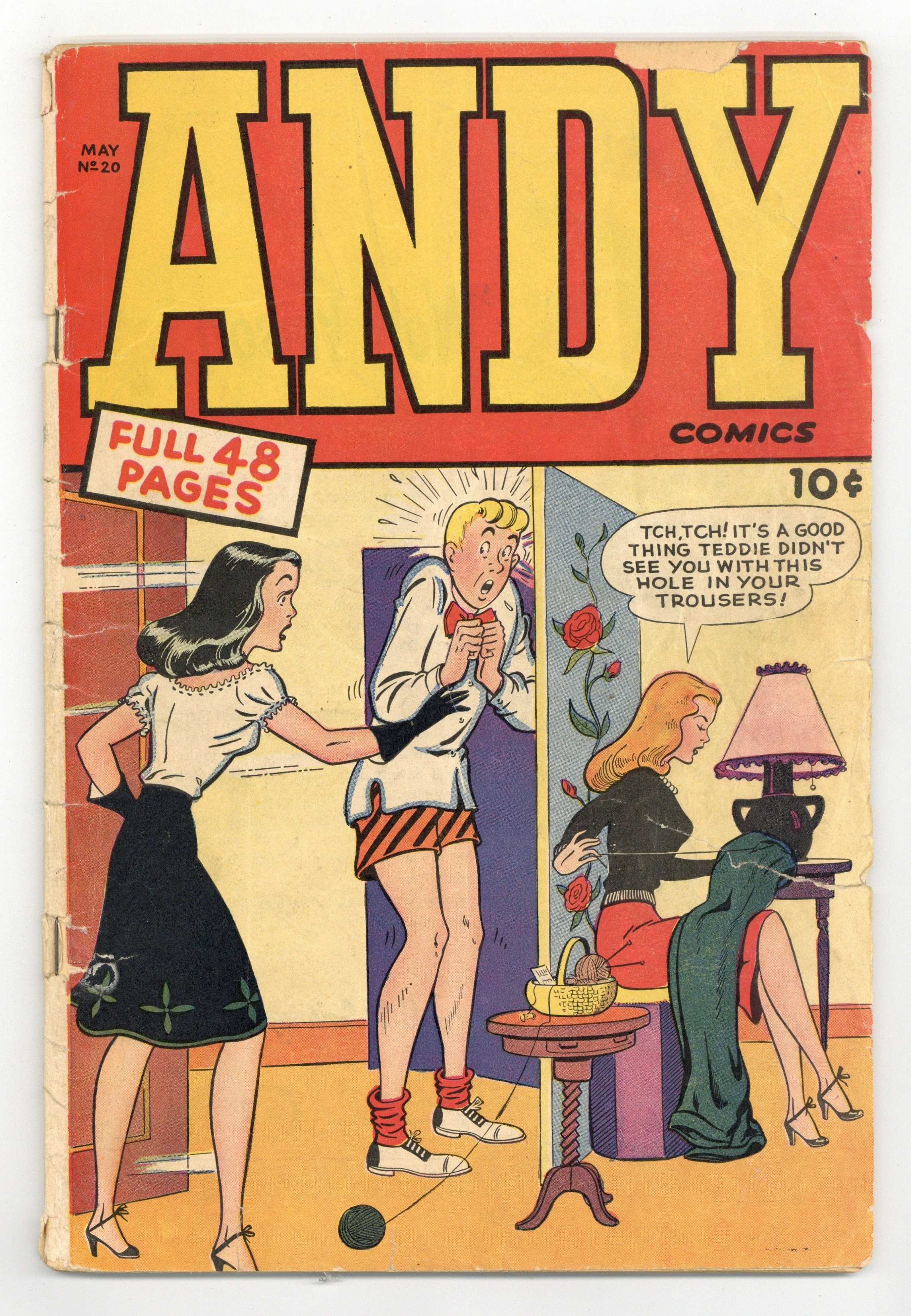 Numbering continues from Scream Comics (1944) #19. Contains teen antics stories in the style of Archie Comics. In order of appearance: "The New Look!"; "Mighty Andy Has Struck Out!"; "Lily Belle" art by Ruth Atkinson; "Gift Horse Laugh"; and "Orville" art by Gus Schrotter. "Screamers" joke pages reprinted from Scream Comics (1944) #19. 52 pages. Full color. Cover price $0.10.