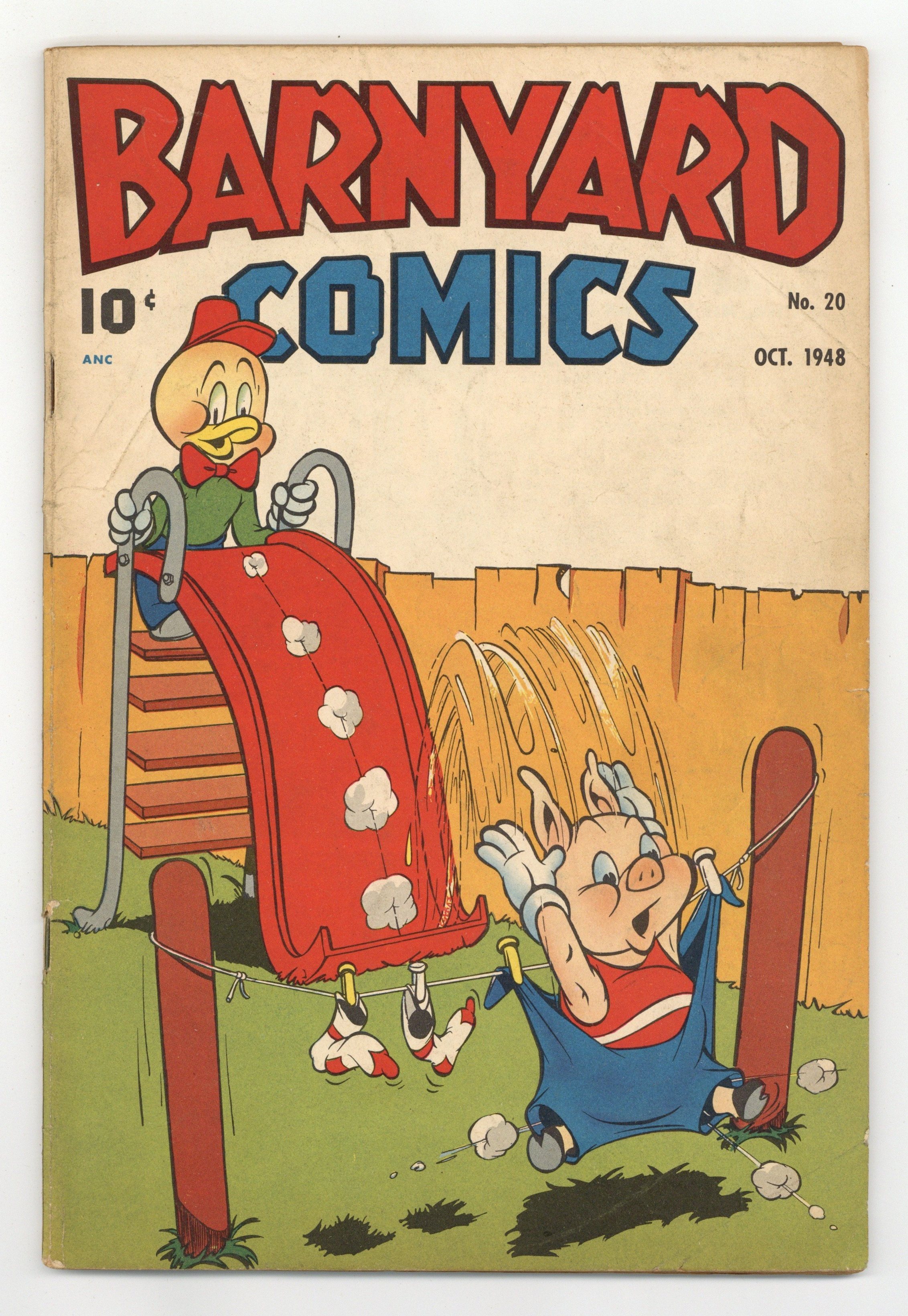 Published Oct 1948 by Standard Comics.$22.00Contains Frank Frazetta comic story art and three Frazetta text story illustrations. Frazetta text story illustrations appear in sixteen nearly-consecutive issues of Barnyard Comics (1944) (#12-15, #17-27, and #29). Contains funny animal stories. In order of appearance: "Barney Rooster" art by Frank Frazetta; "Stanley" art by Jack Bradbury; "Scatty"; "Chappy Chipmunk" art by Jack Bradbury; "Blackeye and Blubber" art by Harry Holt; "Boar Brummel" art by Jack Bradbury; "Fingle"; "The Yehootys" art by Lynn Karp; and "The Yehootys" story by Hubie Karp, art by Lynn Karp. Illustrated text stories: "Big Ears and Little Ears: A Boastful Rabbit Learns His Lesson!" by Elizabeth Starr, illustration by Frank Frazetta; "Ollie the Ostrich: This Strange Bird Made Friends with Everybody!" by Betty Cummings, illustration by Frank Frazetta; and "The Forest Concert: Freddy Bear Just Couldn't Help Being Musical!" by Donald Bayne Hobart, illustration by Frank Frazetta. 52 pages. Full color. Cover price $0.10.