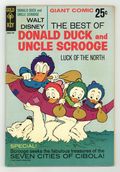 $13.50THE BEST OF DONALD DUCK AND UNCLE SCROOGE (GOLD KEY) #2 No Date 25c Number on cover: 30022-709. Giant size comic reprinting two classic Duck stories by Carl Barks: "Luck of the North" in which Donald, Huey, Dewey, and Louie journey to the Artic Ocean to rescue Gladstone Gander who was sent there as a joke by Donald and "The Seven Cities of Cibola" in which Scrooge, Donald, and the nephews go arrowhead hunting in the desert which leads to a hunt for the legendary Seven Cities of Cibola. Issue also has a four-page story in which Scrooge runs for treasurer and one-page gag strips. Back cover has a pinup of Scrooge. Cover price $0.25.