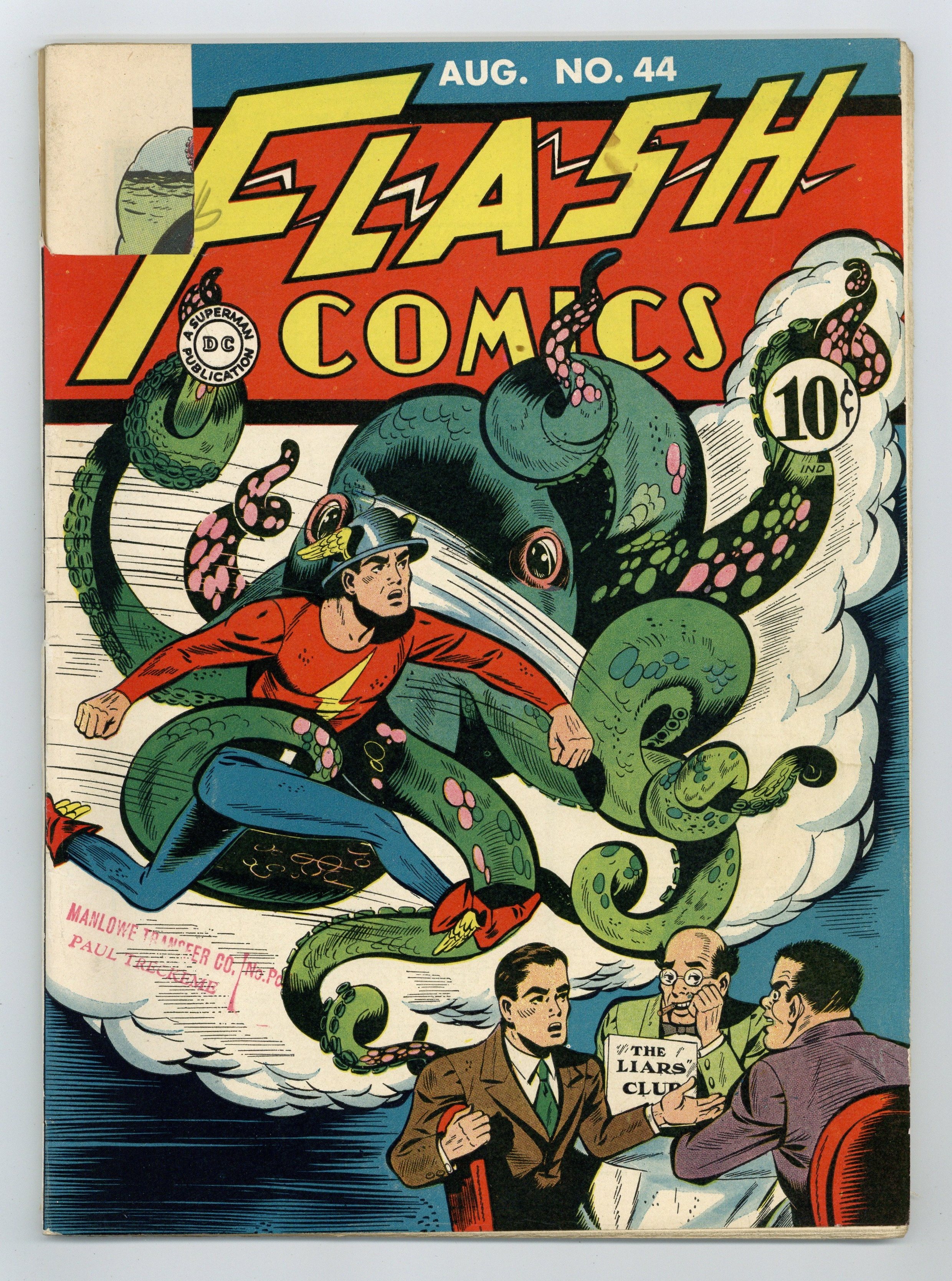 Flash stars in "The Liar's Club," written by Gardner Fox, art by Lou Ferstadt. Also includes: Ghost Patrol in "The Demented Dictator" by Ted Udall and Frank Harry; Johnny Thunder in "The Subway Chase" by John B. Wentworth and Stan Aschmeier; The Whip in "The Curse of the Alvarados" with art by Homer Fleming; "Puritan Perils" by Ed Wheelan; Fat and Slat humor page by Wheelan; and Hawkman in "The Haunted Man" by Fox and Sheldon Moldoff. Cover art by Ferstadt. 60 Pages, Full Color. Cover price $0.10.