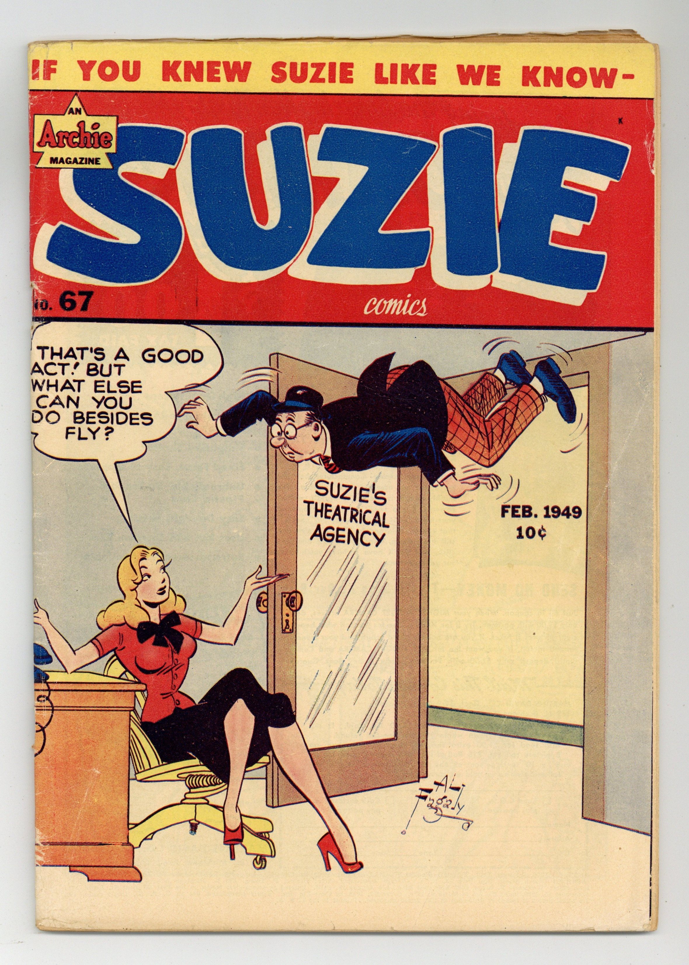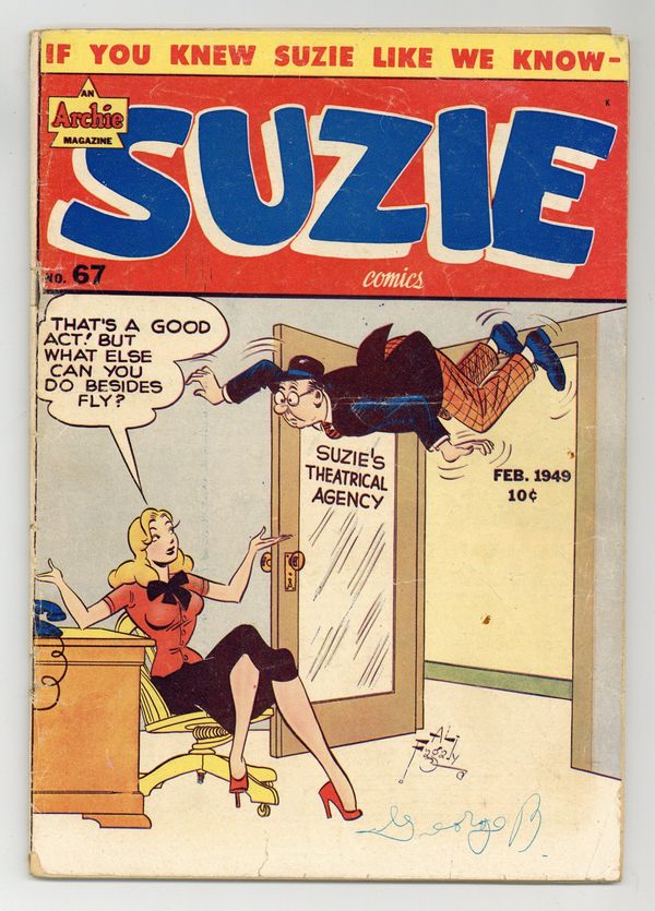 Cover art by Al Fagaly. Horsefeathers starring Suzie. Train Ride starring Suzie. Promotional house ad for Archie Comics. Katy Keene story, art by Bill Woggon. Suzie pin-up. 1949 Katy Keene pinup calendar. The Unwelcome Guest starring Suzie. Nightmare starring Ginger. Suzie's Movie Diary text article. Three's a Crowd starring Suzie. 52 pgs. $0.10. Cover price $0.10.