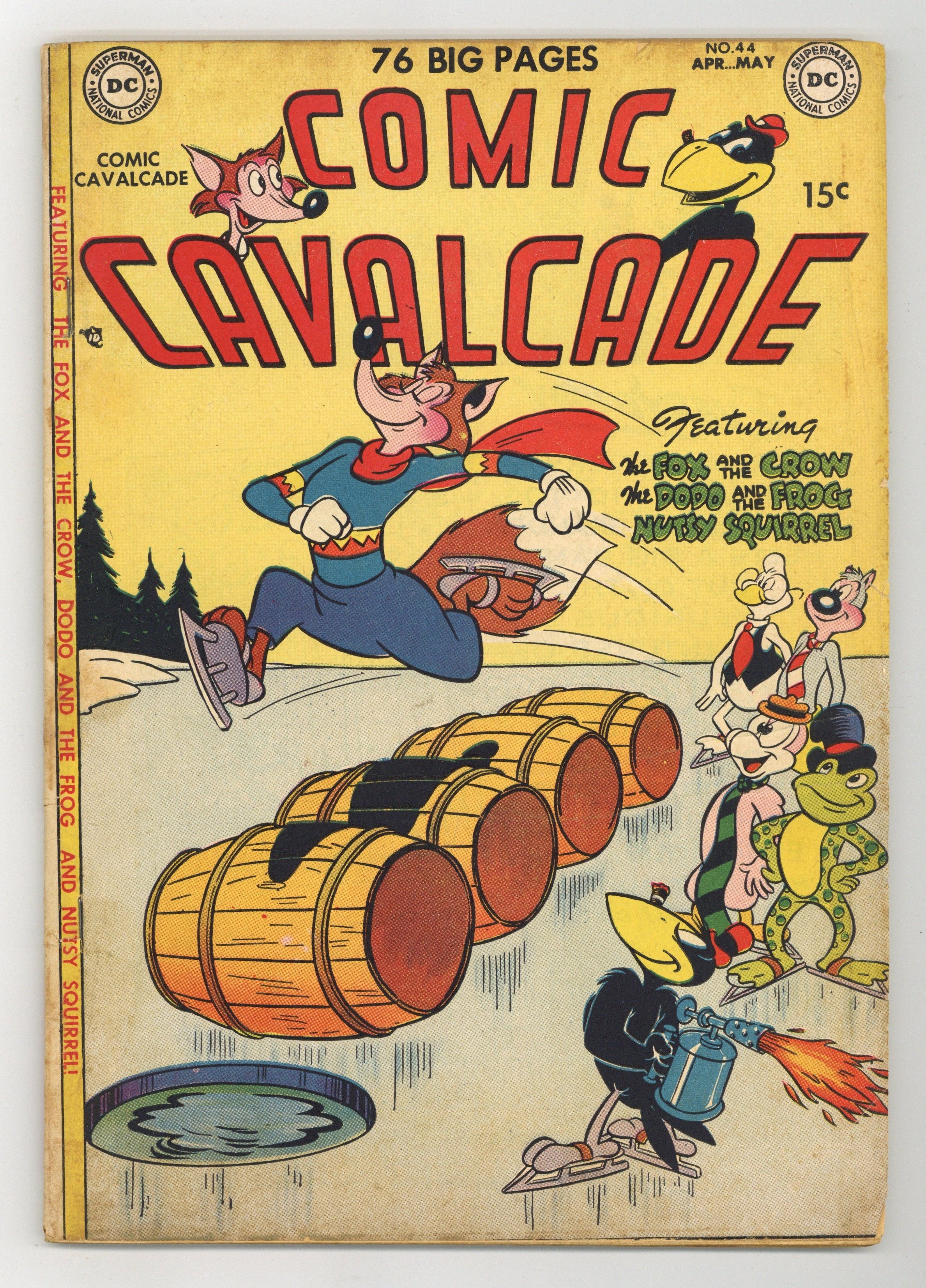 Cover art by Rube Grossman. ["My fires gone out!"] starring Fox and the Crow, art by James F. Davis; Crow tries to scam coal from the Fox. The Cubs' New Job starring Blackie Bear, art by Rube Grossman. Dinner at the Diner starring Doodles Duck, script and art by Howie Post; Doodles and Buttons get jobs at a diner. Shine? starring Dodo and the Frog, art by Otto Feuer. The Actor starring Goofy Goose, art by Rube Grossman. ["Gee, it's raining hard, Bo! Let's find a place to spend the night!"] starring Bo Bunny, script and art by Sheldon Mayer. The Letter] starring Blabber Mouse, art by Rube Grossman. ["absolute quiet"] starring Nutsy Squirrel, art by Rube Grossman. Paramouse Studios starring Custer Cat and Cheesy the Mouse, art by Rube Grossman; Custer and Cheesy try to get a job as a stuntman. Human Rights for All public service announcement starring Superman, script by Jack Schiff, art by Win Mortimer. 76 Pages, Full Color. Cover price $0.15.