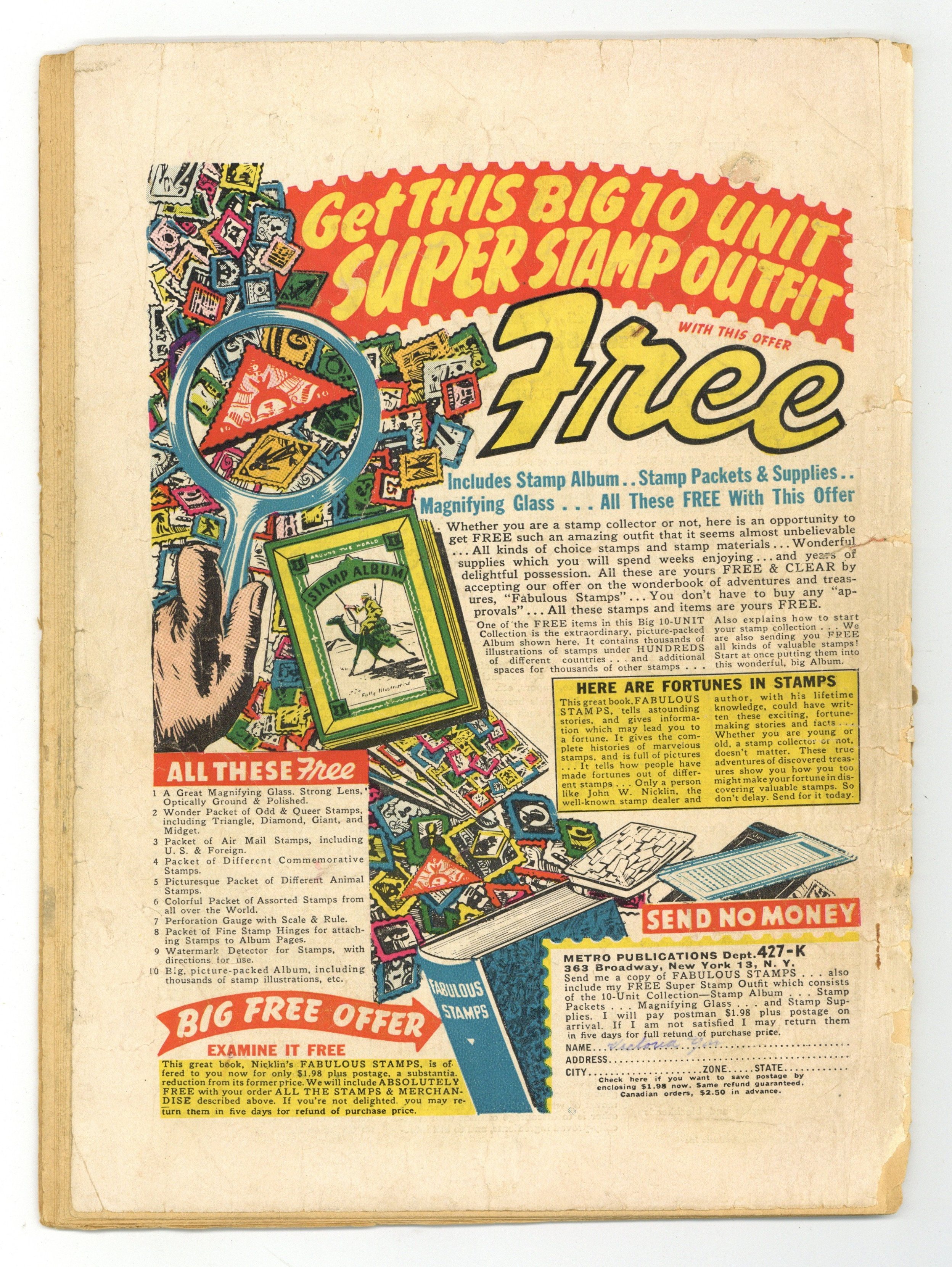 Published 1949 by Avon Publications.$100.00Story by Harry Sinclair Drago. Art by Myron Fass. An issue-length drama based on the novel Women to Love by Harry Sinclair Drago, here credited just as Sinclair Drago. Scarlett falls for street punk Rocco and stays with him as he works his way up in the Chicago underworld, but when he orders the St. Valentines Day Massacre, she feels he might have gone too far. Featuring a painted cover reprinted from one of Avons paperbacks. 32 pages, Full Color. Cover price $0.10.