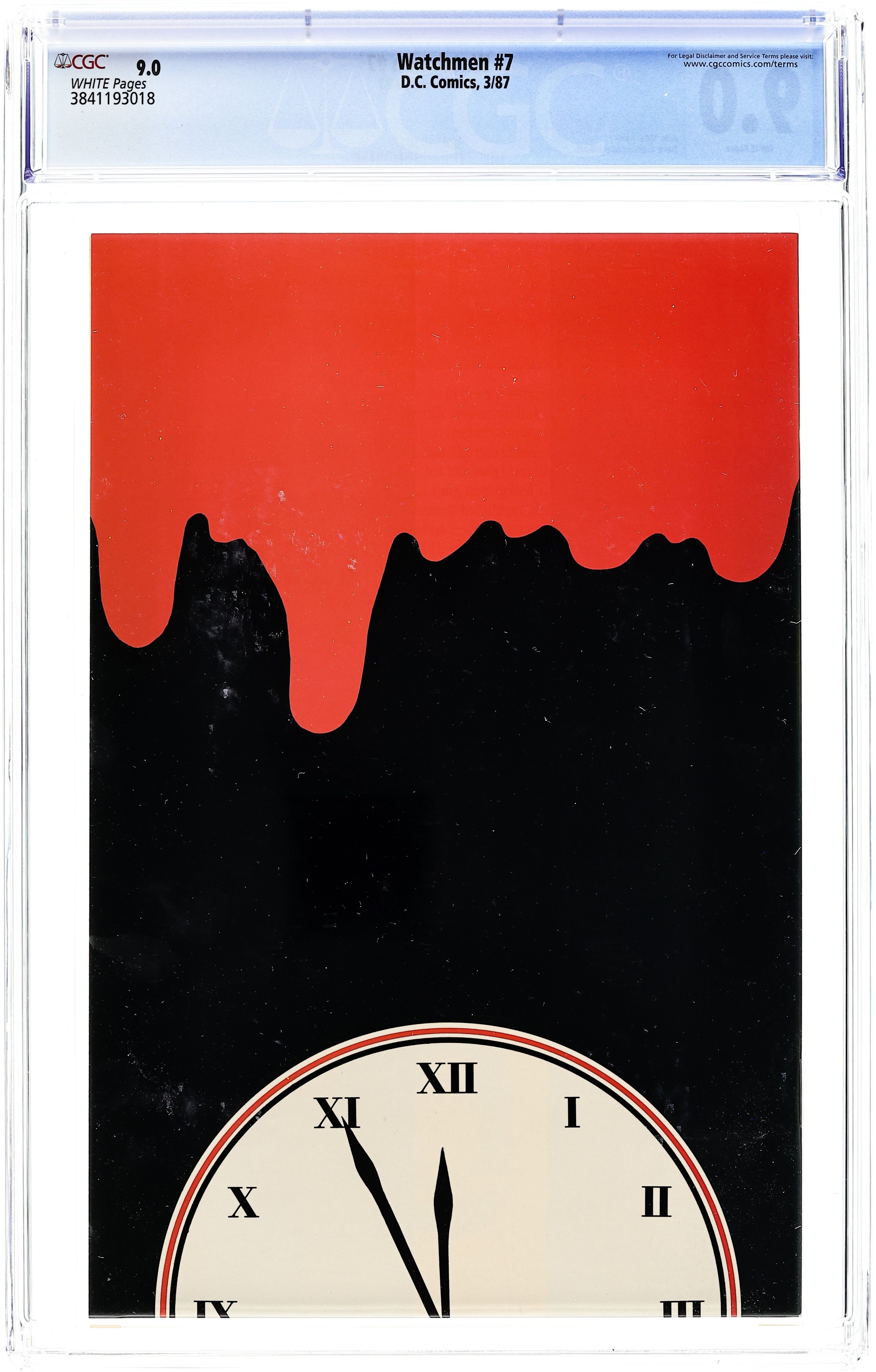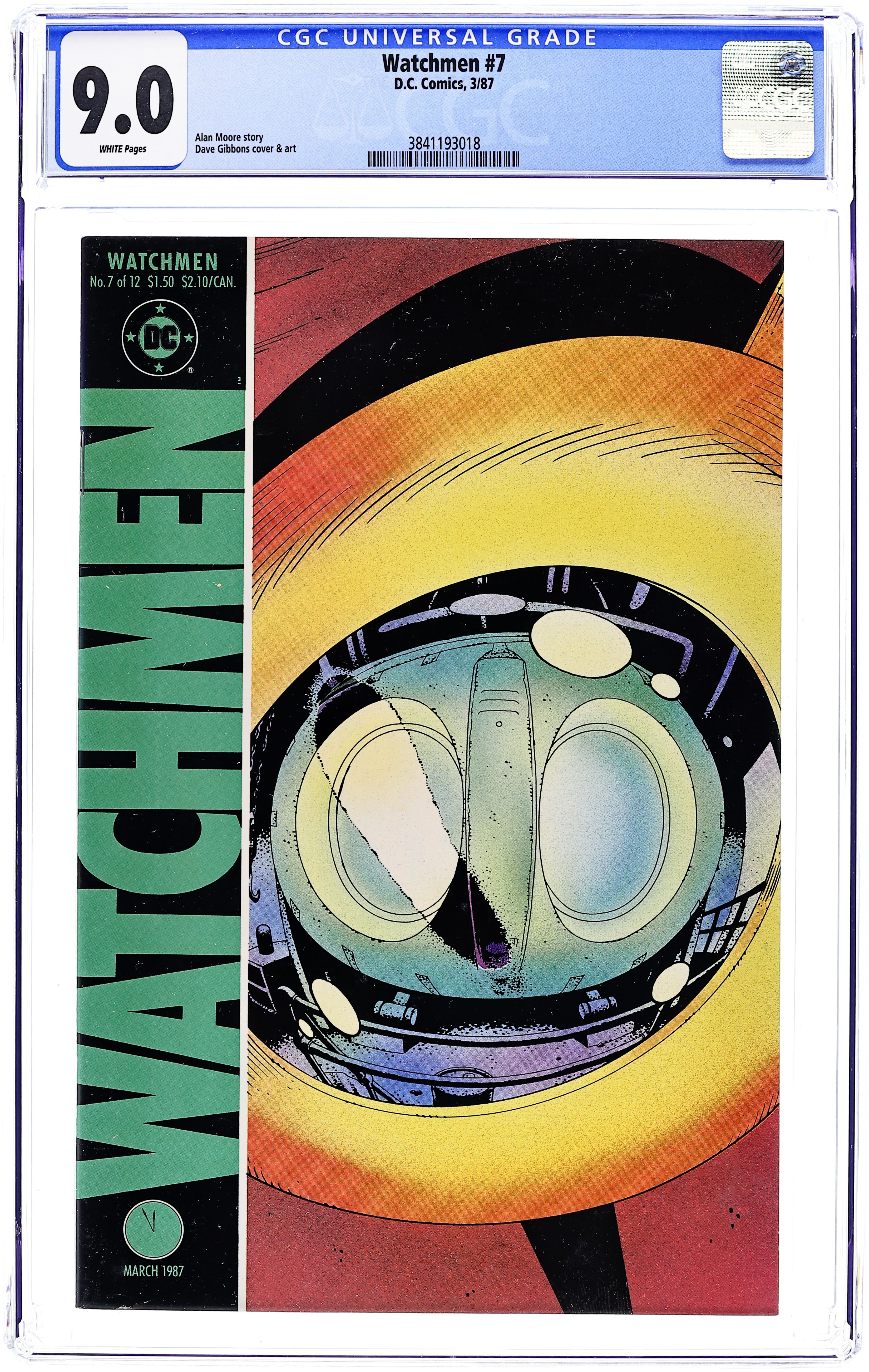 $17.50A brother to dragons. Part 7 of 12. Story by Alan Moore. Art and cover by Dave Gibbons. Night Owl and Silk Spectre return to active duty. Along the way we learn a lot more about what makes costumed heroes do what they do. Includes four page fictional text feature presenting, Blood from the shoulder of Pallas, an article by Daniel Dreiberg. 32 pages. Full color. No ads. Cover price $1.50.