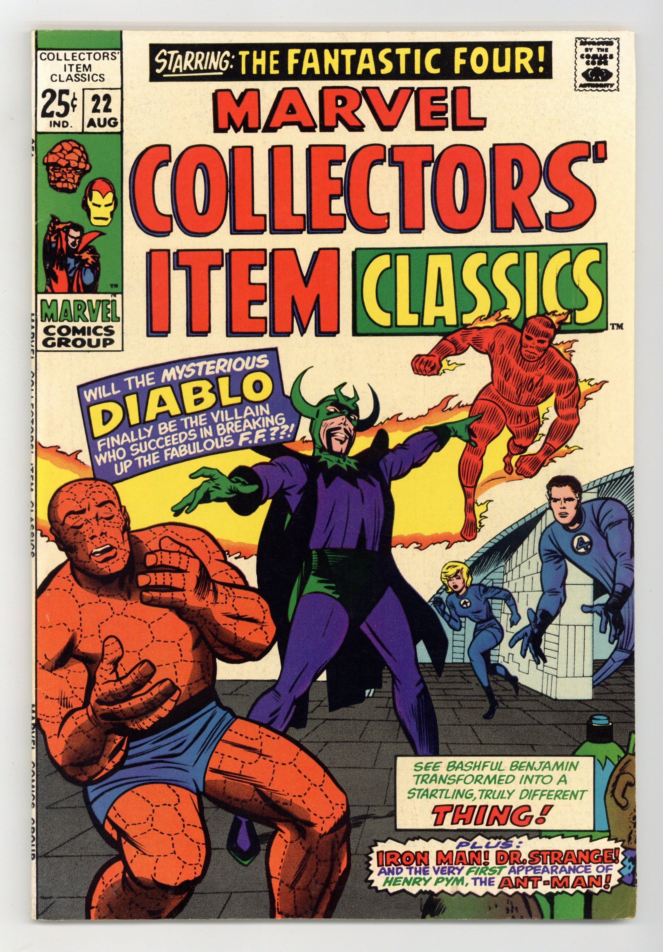 Final issue. Reprints Fantastic Four 30, Iron Man from Tales of Suspense 63, Ant Man from Tales to Astonish #27, and Doctor Strange from Strange Tales 131. Cover pencils by Jack Kirby, inks by Chic Stone. "The Dreaded Diablo!", script by Stan Lee, pencils by Jack Kirby, inks by Chic Stone; On a vacation in Transylvania, the FF encounter a castle inhabited by Diablo. Mr. Fantastic pinup, pencils by Jack Kirby. "Somewhere Lurks the Phantom," script by Stan Lee, pencils by Don Heck, inks by Dick Ayers; Iron Man stops industrial saboteur the Phantom, who turns out to be one of his employees. Iron man pinup, pencils by Gene Colan. "The Man in the Ant Hill!", script by Larry Lieber (script) and Stan Lee (plot), pencils by Jack Kirby, inks by Dick Ayers; Henry Pym invents a shrinking serum, but is trapped in an ant hill when he tests it; He is attacked by several ants, but one of them helps him escape and restore his ordinary size. "The Hunter and the Hunted," script by Stan Lee, art by Steve Ditko; In the far East, Strange is on the run from Mordo and his minions, unaware that Mordo's increased power comes from Dormammu; As Mordo forcibly recruits more followers to search for Strange, the mage makes plans to hop a plane to NYC. 68 pgs., full color. Cover price $0.25.