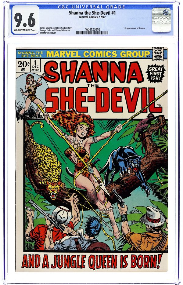 Cover art by Jim Steranko. "Shanna the She-Devil!", script by Carole Seuling and Steve Gerber, pencils by George Tuska, inks by Vince Colletta; The origin of Shanna; Shanna O'Hara Plunder is the daughter of a diamond miner; Born in Africa, she spent her childhood in the jungles of Zaire; After Shanna's father accidentally kills her mother, Shanna moves back to the United States to live with relatives, and Shanna grows up to become an accomplished athlete and then becomes a zoologist; She returns to Africa and patrols the jungle living freely with the land. 36 pgs., full color. Cover price $0.20.