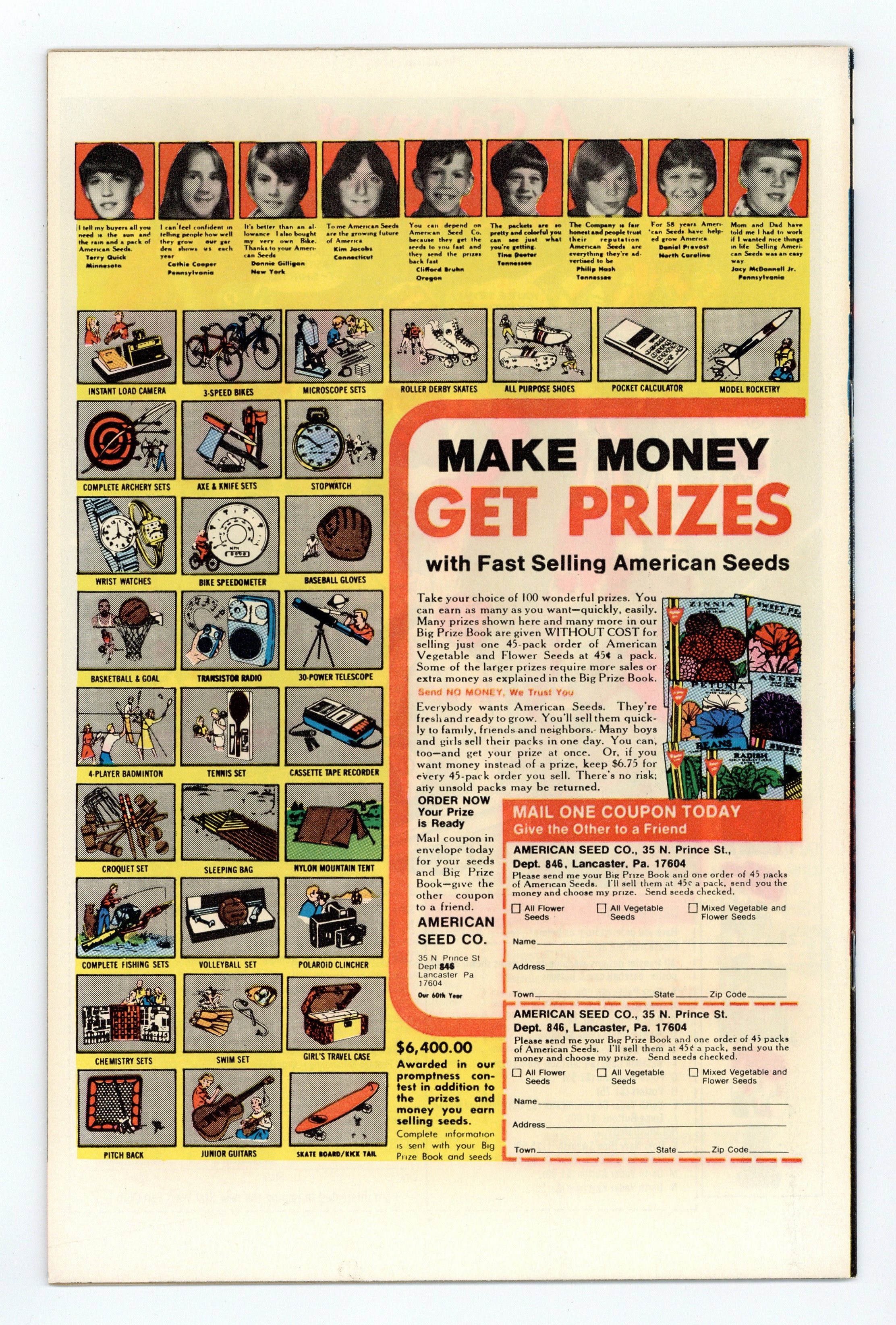 Cover art by Joe Sinnott. ...A Future Uncertain!, script by Marv Wolfman, pencils by Carmine Infantino, inks by Tony DeZuniga; Spider-Woman tries to get her life together after her childhood experiences with the High Evolutionary and her recent break with Hydra; origin story. 32 pgs. $0.35. Cover price $0.35.