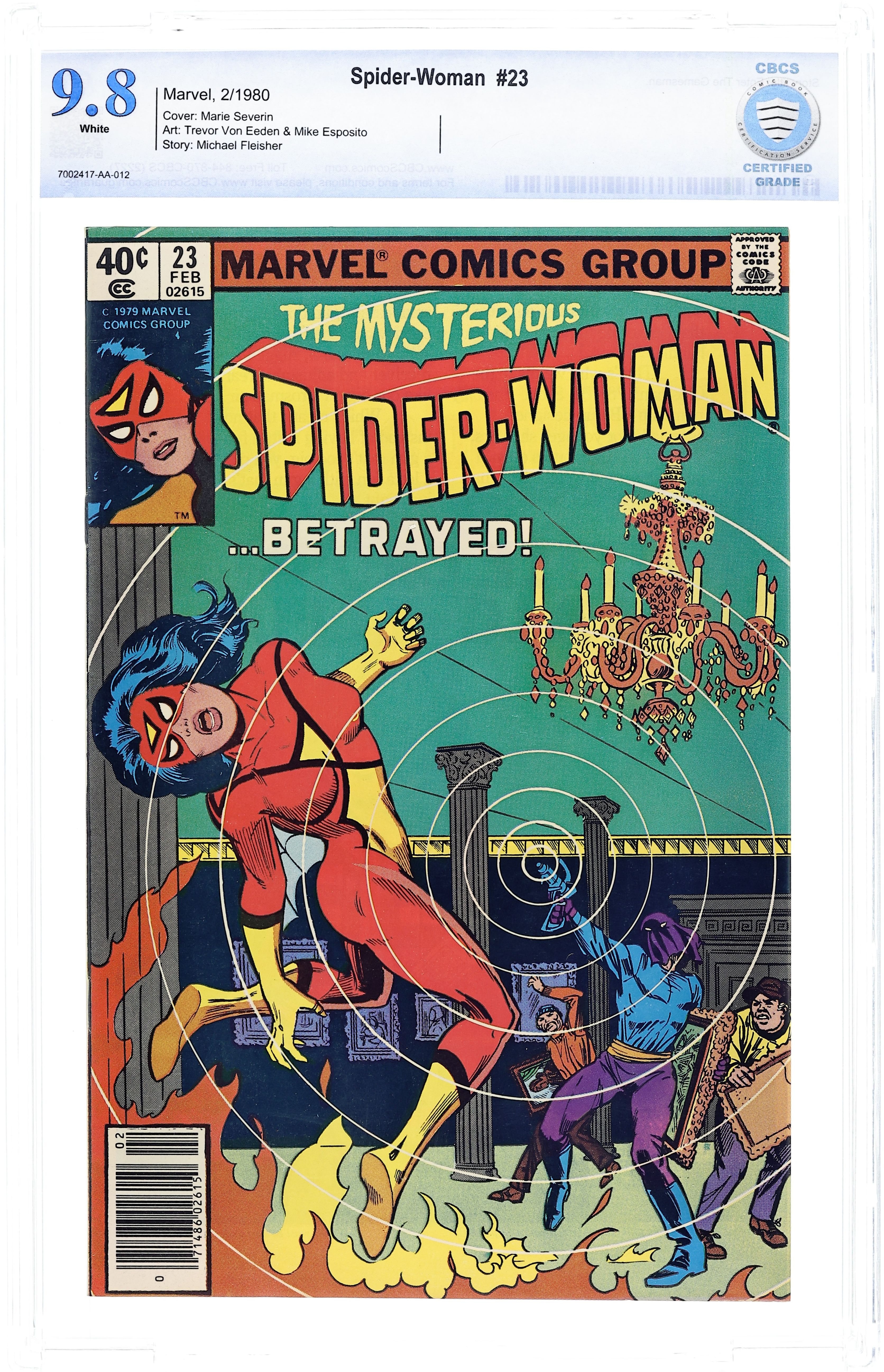 Cover pencils by Marie Severin. Enter the Gamesman, script by Michael Fleisher, pencils by Trevor Von Eeden (breakdowns) and Mike Esposito (finished art), inks by Mike Esposito; betrayed, Spider-Woman must face the Gamesman. 36 pgs. $0.40. Cover price $0.40.