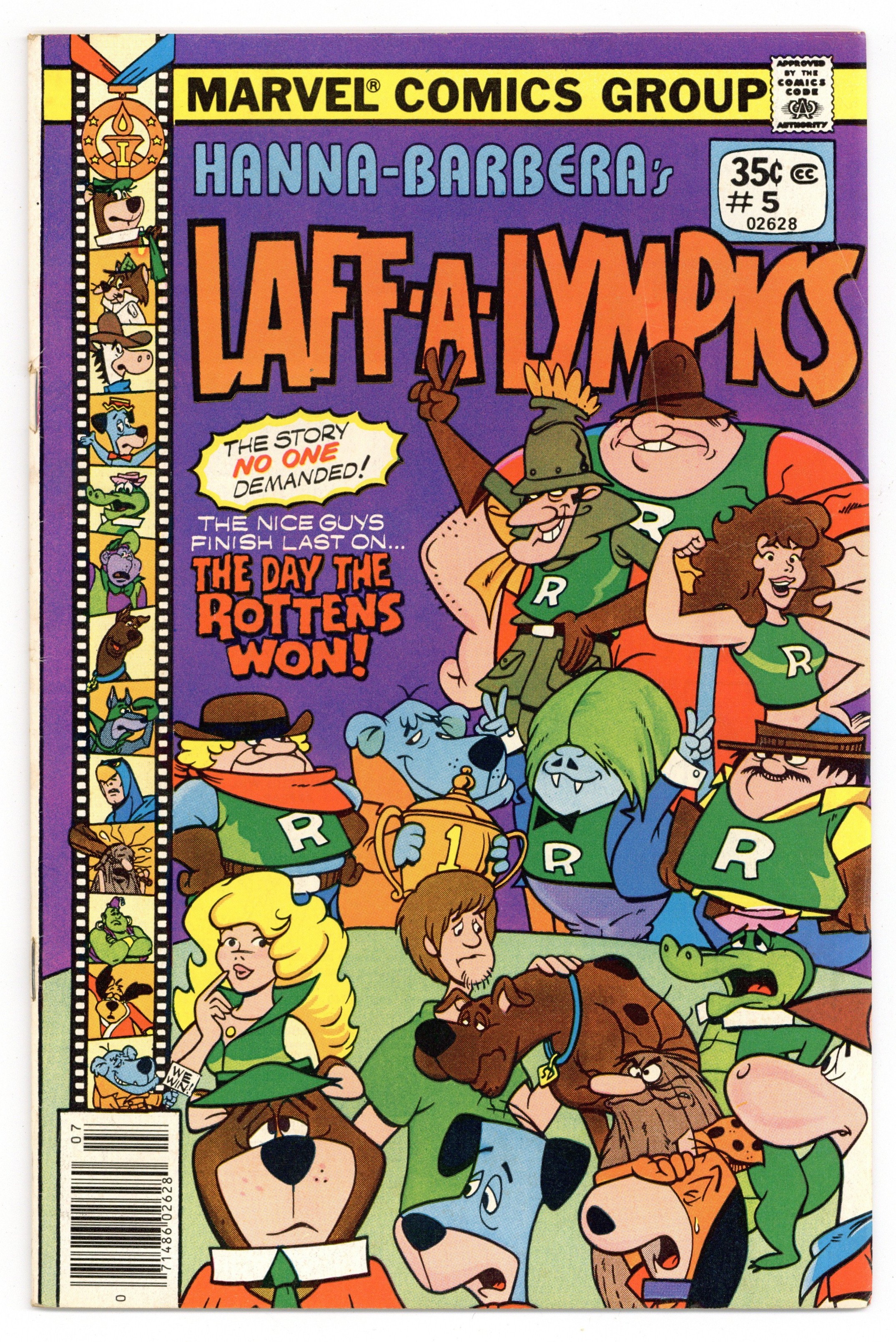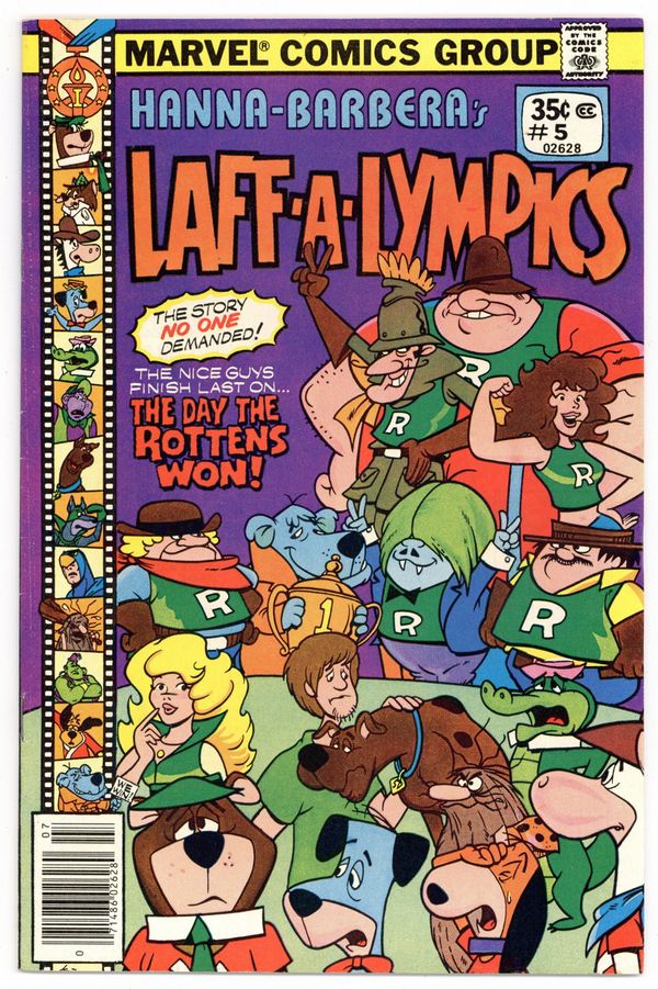 $14.00Cover pencils by Mark Evanier (layout) and Frank Smith, inks by Scott Shaw! "The Day the Rottens Won!", script by Mark Evanier, pencils by Jack Manning, inks by Scott Shaw; The Really Rottens have turned over a new leaf and are competing fairly, but the other members of the Scooby Doobies and the Yogi Yahooeys are now acting out of character; Appearances by Yogi Bear; Scooby Doo; Mumbly; Snagglepuss; Mildew Wolf; Shaggy; Dynomutt; Captain Caveman; Boo Boo Bear; Huckleberry Hound; Wally Gator; Blue Falcon; Augie Doggie; Doggie Daddy; Quick Draw McGraw; Dinky Dalton; Hokey Wolf; Babu the Genie; Pixie & Dixie; Dread Baron; Dee Dee Skyes; Taffy Dare; Brenda Chance; The Creepleys; Orful Octopus; Hong Kong Phooey; Cindy Bear; Yakky Doodle Duck; Mr. Jinks; Grape Ape; Daisy Mayhem; Fondoo the Magician; Dirty Dalton; and Dastardly Dalton. "The Funtastic World of Hanna-Barbera: Cartoon Roots III" article by Art Scott; Background/history on Hanna Barbera characters: Mr. Jinks, Pixie, Dixie, Captain Caveman & the Teen Angels and the Dalton Brothers. 36 pgs., full color. Cover price $0.35.