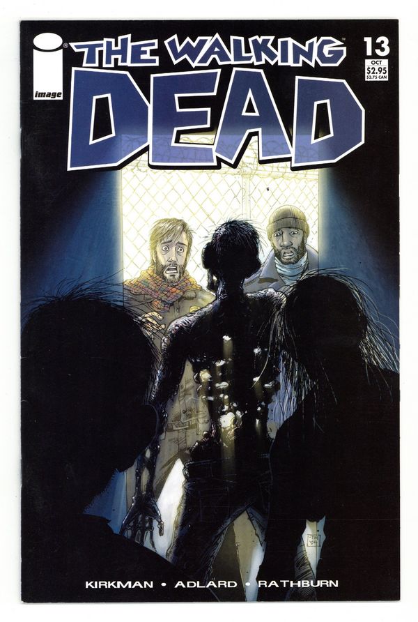 $32.00On sale 10.06 $2.95 monthly ongoing miniseries black & white, 32 pages written by ROBERT KIRKMAN art by CHARLIE ADLARD cover by TONY MOORE CONCEPT: An epidemic of apocalyptic proportions has swept the globe, causing the dead to rise and feed on the living. In a matter of months society has crumbled: There is no government, no grocery stores, no mail delivery, no cable TV. In a world ruled by the dead, we are forced to finally begin living. THIS ISSUE: The epic tale of survival continues as Rick and crew find another possible shelter. This place is perfect: It's secure, it's large, it has nearly everything they could ever need. Only problem is, it's already got dead tenants...lots of 'em. MATURE READERS WARNING Cover price $2.95.