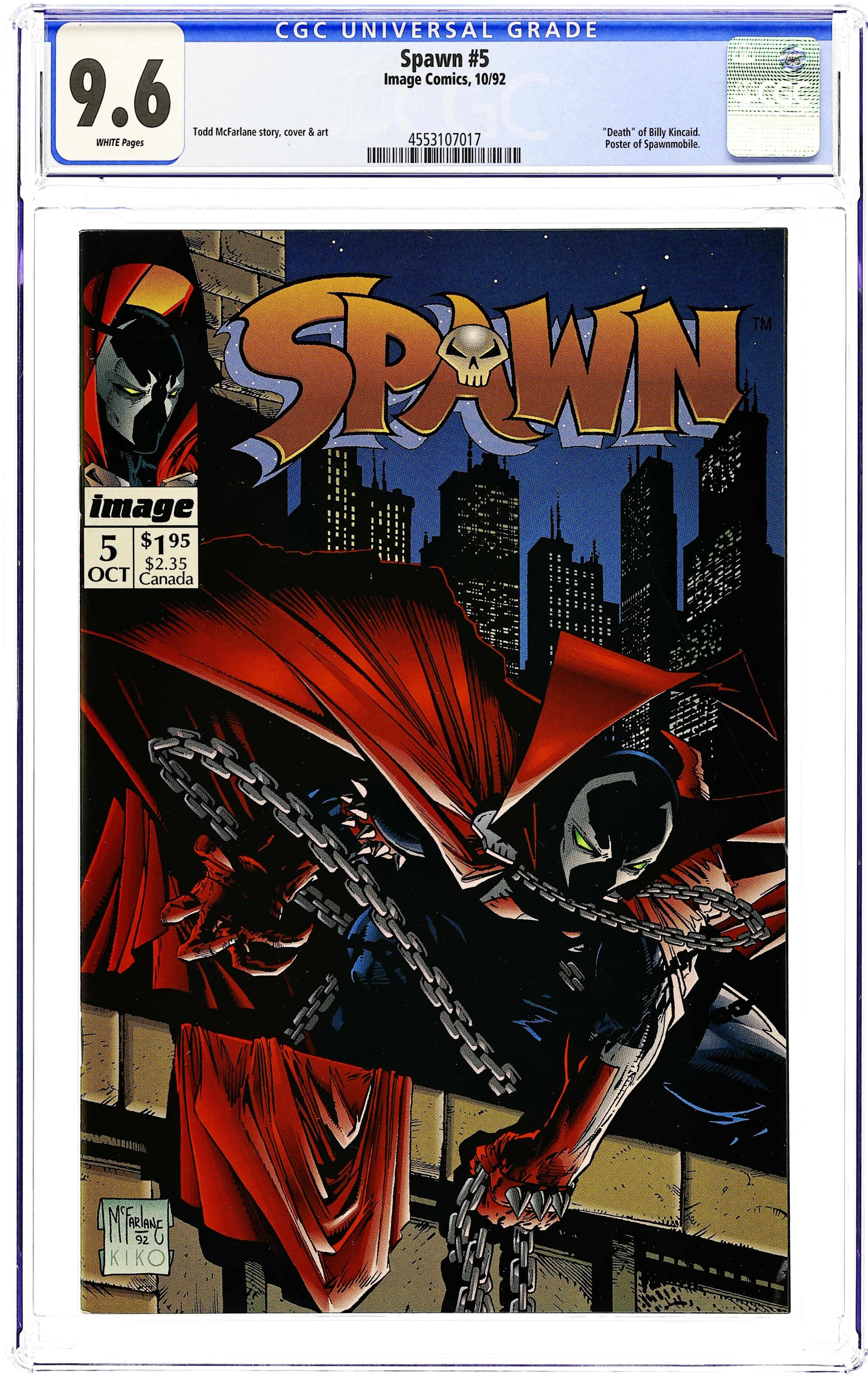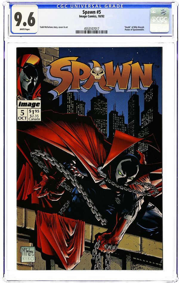 Direct Edition (has no bar code on cover). "Justice!". Created, story, and art by Todd McFarlane. Billy Kincaid is convicted child killer. When he is released back into society, how long before he reverts to his sick twisted ways? This time though, it is not a failed justice system that Kincaid will have to face. He'll have to face the justice of Spawn! Includes a 2-page pin-up by Jason Pearson. Spawn Mobile pull out centerfold photo poster. NOTE: To the best of our knowledge, a limited amount of copies were packaged inside a Limited Edition Hot Wheels Spawn Mobile Toy and once removed from the Hot Wheels package, it is indistinguishable from the rest of the print run. Cover price $1.95.