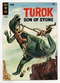 Painted cover. Turok in "Drought" in which Turok and Andar face animal and human foe during a deadly drought and "The Secret of the Black Water" in which Turok and Andar investigate a swamp of black water. Issue also has backup feature "Young Earth - The Bear Cult," a one-page text feature "Prehistoric Pioneers," and one-page strips. No art/story credits given. 36 pages, full color. Cover price $0.12.