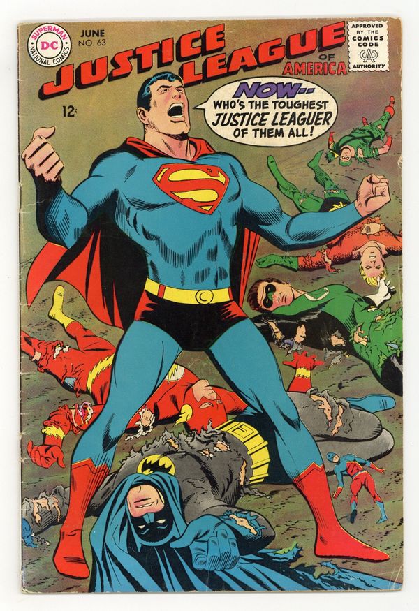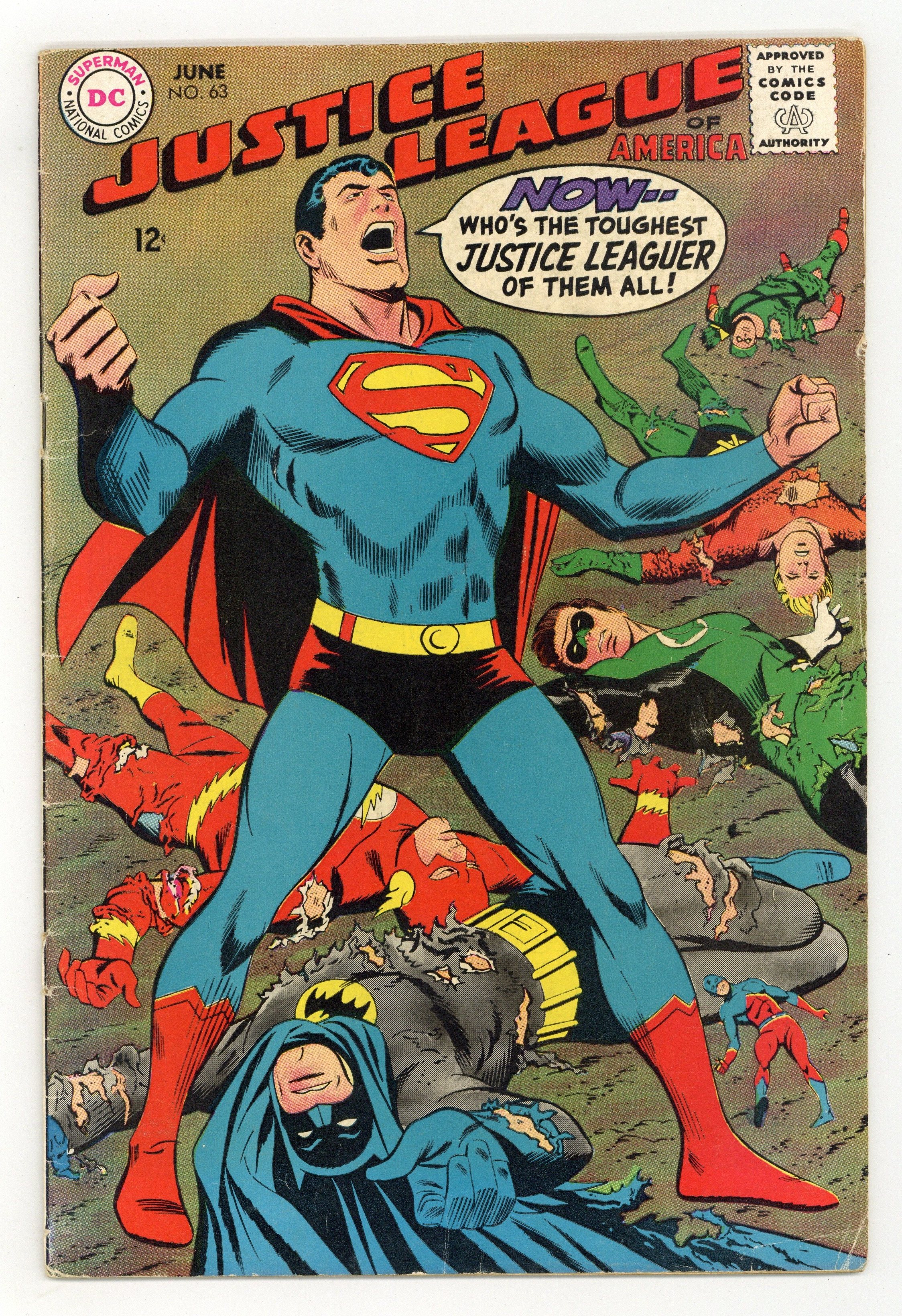 Cover pencils by Mike Sekowsky, inks by Jack Abel. Time Signs a Death-Warrant for the Justice League!, script by Gardner Fox, pencils by Mike Sekowsky and Jim Shooter (layout), inks by George Roussos; the Key mind controls the JLA to not leave their headquarters and to kill one another after an hour; Superman travels three years into the past. 32 pgs. $0.12. Cover price $0.12.