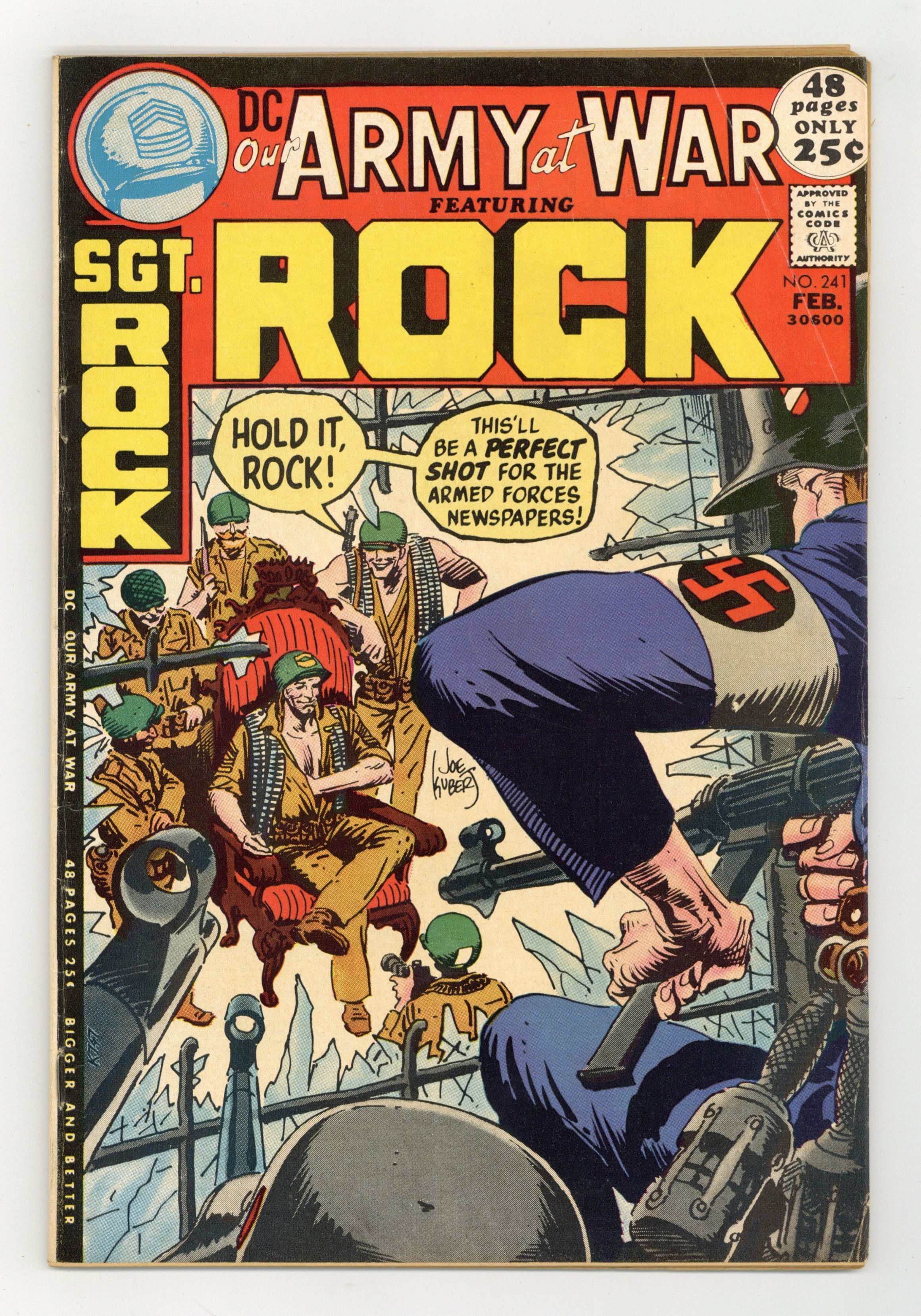 48-page giant. Sgt. Rock stars in "War Story" (script by Bob Kanigher, art by Russ Heath). "Dirty Job" (script by Bob Haney, art by Alex Toth). "Combat Tag" (art by John Severin). U.S.S. Stevens stars in "Batmen" (art by Sam Glanzman). "The Hot Spot" (reprint by Joe Kubert?). Kubert cover. 52 Pages, Full Color. Cover price $0.25.