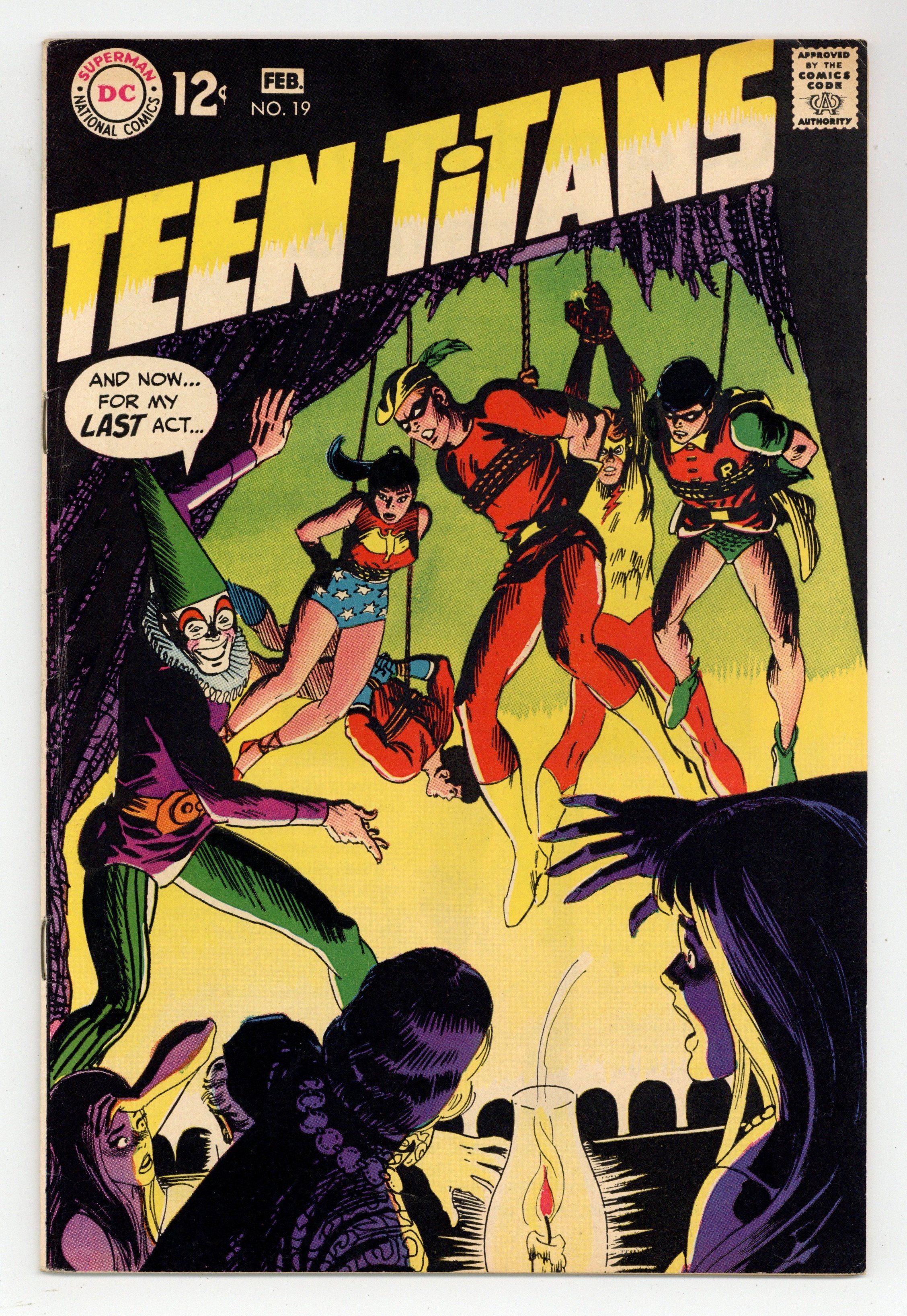 Written by Mike Friedrich. Art by Gil Kane and Wally Wood. Cover by Nick Cardy. The Titans battle Punch a teen-age would-be villain. Punch defeats two groups of Titans, but when they escape they are able to capture him with ease. Aqualad takes a leave of absence from the Titans. Wonderful World of Comics #7 article. 36 Pages, Full Color. Cover price $0.12.