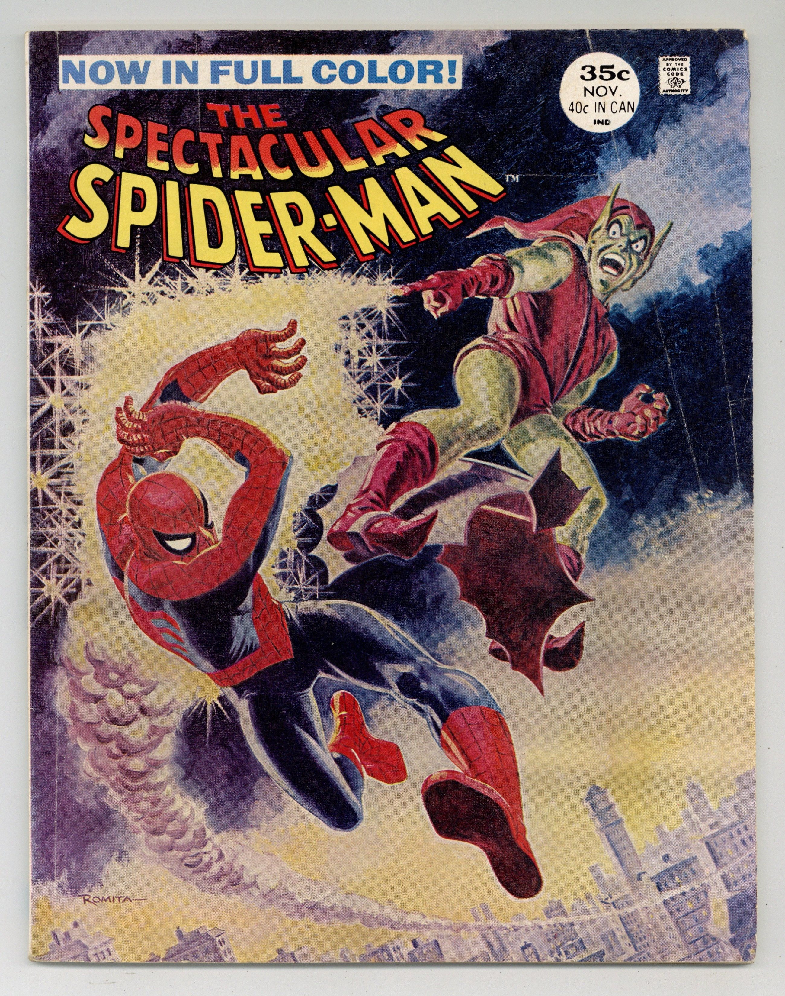 Vol. 1, No. 2. November 1968. Spider-Man battles the Green Goblin in "The Goblin Lives!" Script by Stan Lee, pencils by John Romita Sr., inks by Jim Mooney. Peter Parker has learned the identity of the Goblin--none other than Norman Osborn--and is pushed to his limit when green one threatens Aunt May! 58 pages of non-stop action! 8-in. x 10.25-in.; color; 64 pages. Romita cover painting. Cover price $0.35.