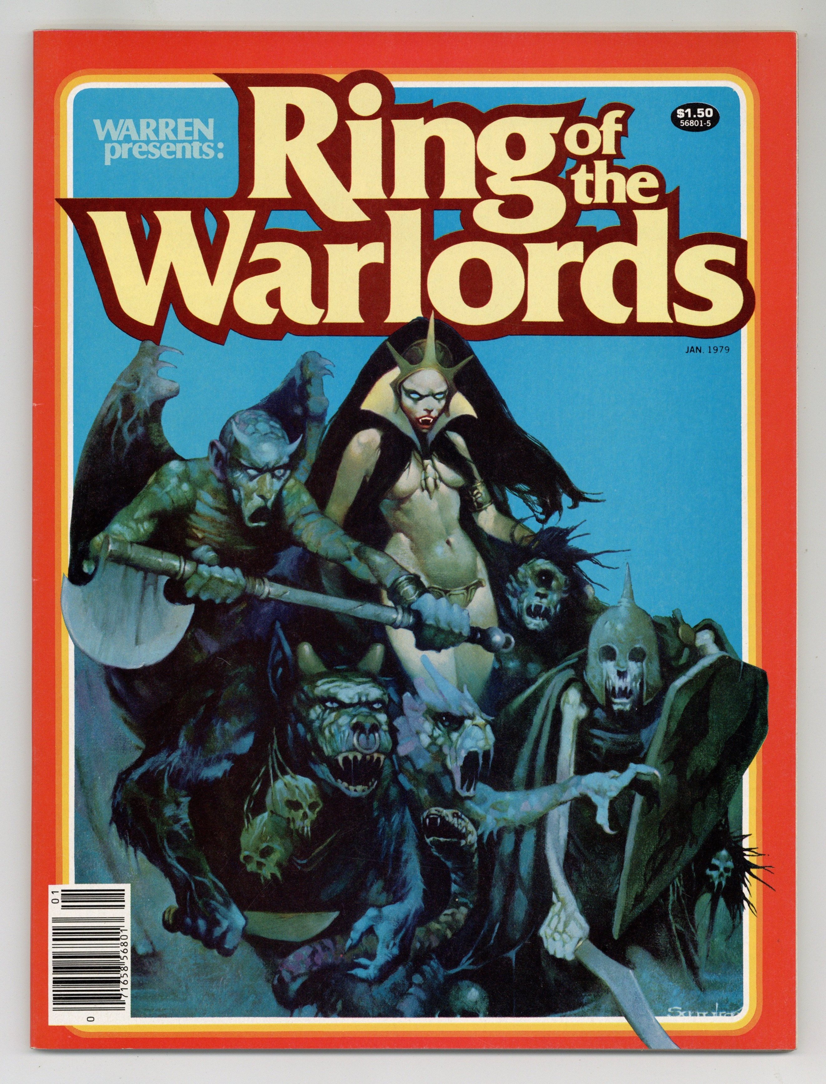 Cover by Manuel Sanjulian. Edited by Louise Jones. Stories by Wally Wood, Roger McKenzie, Bill DuBay, Budd Lewis, Esteban Maroto, and Nicola Cuti. Art by Esteban Maroto, Gonzalo Mayo, and Wally Wood. Reprints of fantasy adventure stories from Warrens magazines, fortuitously timed to coincide with the release of the original (but unrelated) Lord of the Rings movie. The Last Dragon King; Jackie and the Leprechaun; Prelude to Armageddon; The Curse; A Secret King; Chess. 8 1/2 in. x 11 in. 68 pages, PC/PB&W. Cover price $2.00.