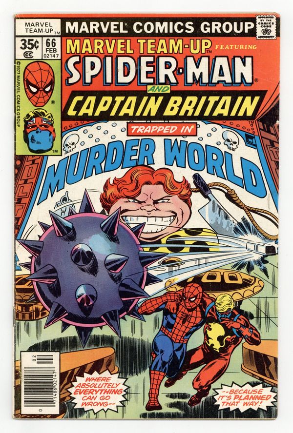 "Murder World" Part 2 of 2. Guest-starring Spider-Man and Captain Britain. Script by Chris Claremont. Pencils by John Byrne. Inks by Dave Hunt. Cover by John Byrne and Frank Giacoia. Captain Britain and the Spectacular Spider-Man wake up inside a giant pinball machine! The two heroes are trapped in Murderworld...an amusement park for murder! Can the web-slinger and Captain Britain beat Arcade at his own game? And also save Courtney Ross in the process? First appearance of Murderworld. Cameo appearance by Captain Jean DeWolff. (Notes: Arcade appears next in Uncanny X-Men 122. This two-part story was reprinted in Marvel Tales 201 and 202.) 36 pages. Cover price $0.35.