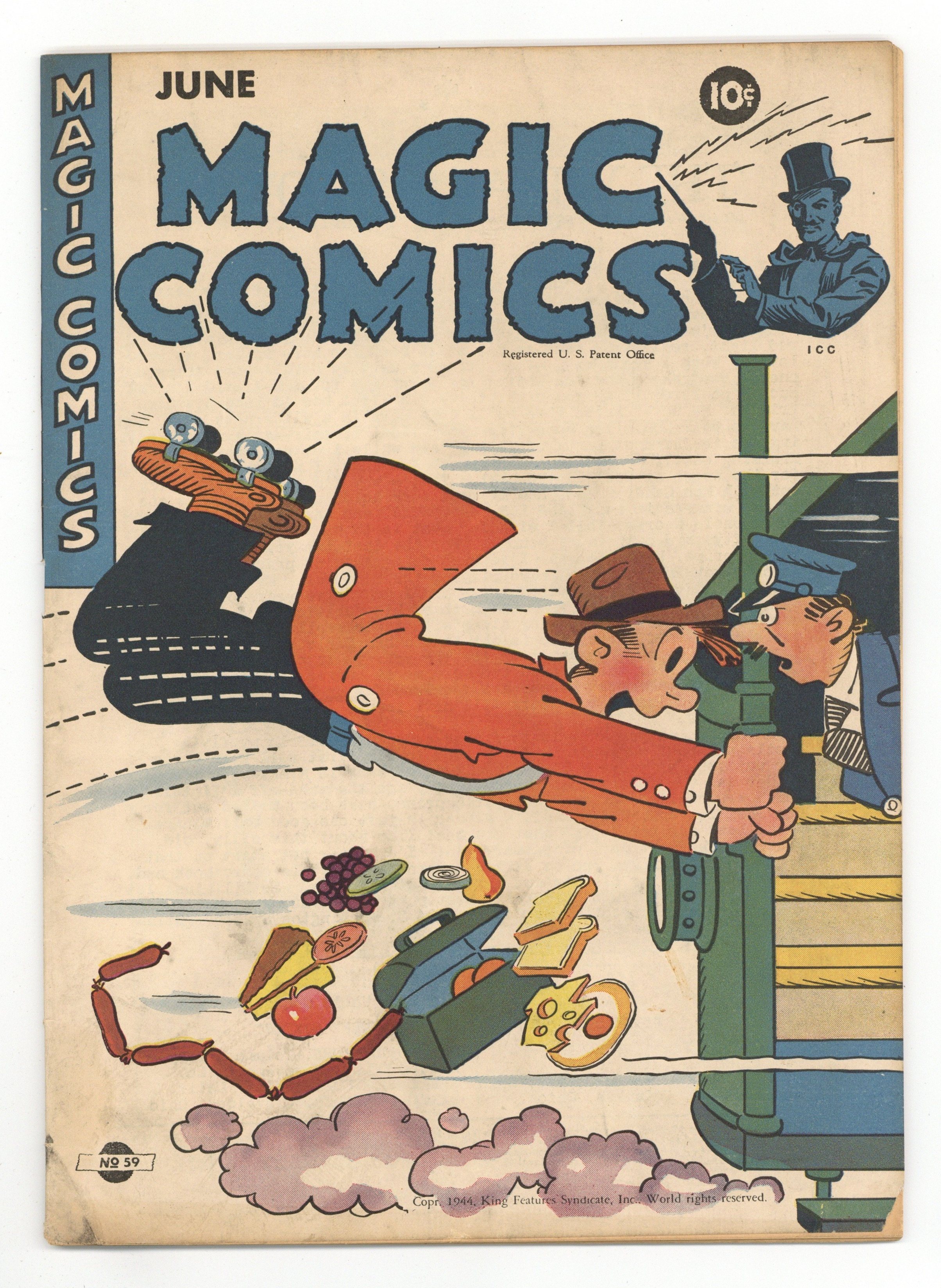 Edited by Margery McKay (sometimes credited as G. Whiz). Stories and art by Rod Reed, C.C. Beck, Lee Falk, Phil Davis, Feg Murray, Clayton Knight, H. H. Knerr, Fran Striker, Charles Flanders, Floyd Torbert, Robert Storm, Mel Graff, Carl Anderson, Edwina Dumm, Chic Young, Bob Dunn, Frank Miller, Joe Musial, Billy DeBeck, Jimmy Thompson, Eugene L. Pollack, Tom Sims, and Bela Zaboly. Lee Falk's adventurer Mandrake the Magician gets top billing in this anthology series featuring reprints of King Features Syndicate comic strips. Back-cover Tootsie Roll ad, "Captain Tootsie and the Haunted House," features art by Captain Marvel creator C.C. Beck (including an art credit, rare for any ad). Blondie, Mandrake the Magician, High Spots, Tippie and Cap Stubbs, The Lone Ranger, Heroes on Wings, Jan and Aloysius, Seein' Stars, Secret Agent X-9, Little Acorns, Thimble Theater starring Popeye, Henry, Private Breger Abroad, Barney Baxter in the Air, Dingle Hoofer und His Dog, and Dollar-A-Dither. 52 pages, Full Color. Cover price $0.10.