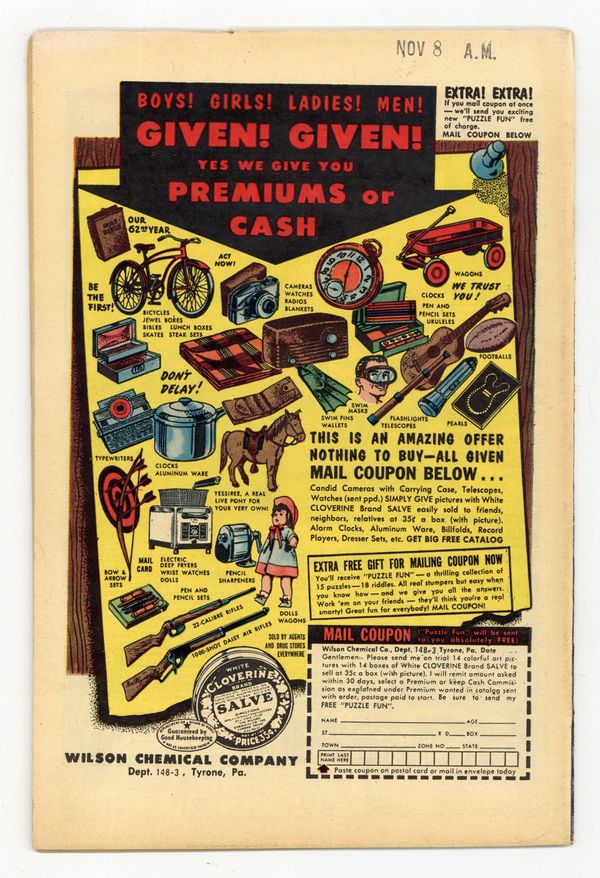 Iron Mike McGraw in "Take the Town" and "Betrayed on the Battlefield!" Also: "The Secret Raiders" (art by Paul Reinman), "Captured" (art by Bob Powell), the U.S. Marine Corps in "Victory at Veracruz," and a two-page text story, "Battle of the Century." Cover price $0.10.