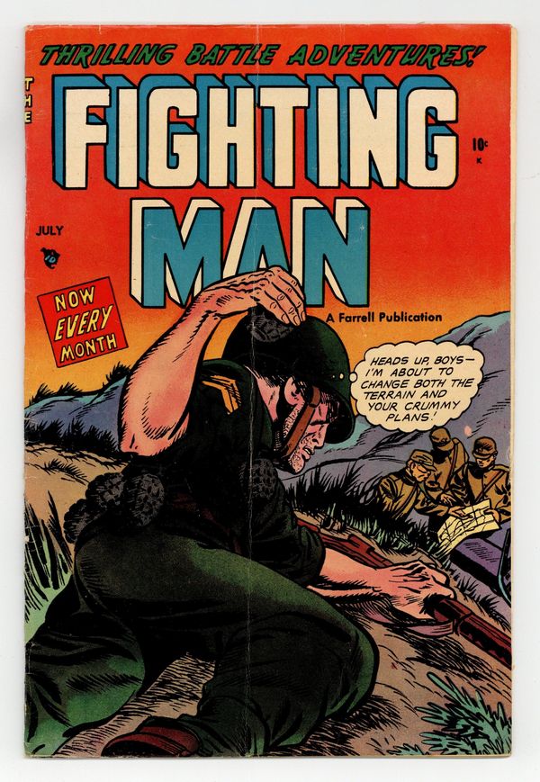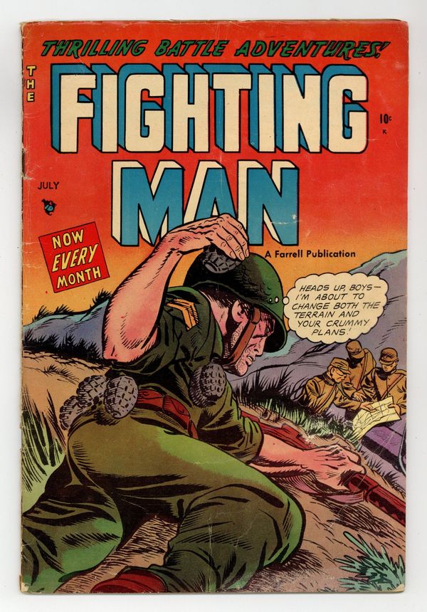 Battlefield tales of Korea illustrate the tensions of the Cold War. Soldier Matt, assigned to locomotive train duty, longs for more direct action, and soon gets his wish. Rival Army engineers Dave and Bill must put aside their differences when the enemy attacks. Military convict Gentry is sent to Korea, where he promptly gets into more trouble. Scarlet Wheels; Enemy Landing; Sniper's Nest; Bloody Ice; Guardhouse Lawyer. Final issue of the series. 36 pages, Full Color. Cover price $0.10.