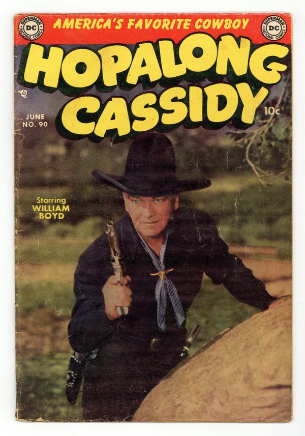 $24.00Stories and art by Gene Colan, Julius Schwartz, Bernard Sachs, Jack Miller, Morris Waldinger, Joe Giella, Tom Nicolosi, Ray Burnley, Raymond Perry and Don Cameron. Western adventure featuring one of the most popular heroes of the mid-20th century, star of TV, film and radio. Rodeo clown Barrelhead Baggs is a suspect when robbers make use of his stunts, in one of three stories this issue illustrated by future Marvel legend Gene Colan. Hopalong matches wits with a rival lawmen and a bulletproof bandit. Life on the rodeo circuit is illustrated in a one-pager written by legendary DC editor Julius Schwartz. Cowboy Clown Robberies; Indian Name-Calling; The Rival Lawmen; The Mysterious Walk-Along Smith; Wild Names of the Wild West; Bulletproof Bandit; Rodeo Circuit. 32 pages, Full Color. Cover price $0.10.