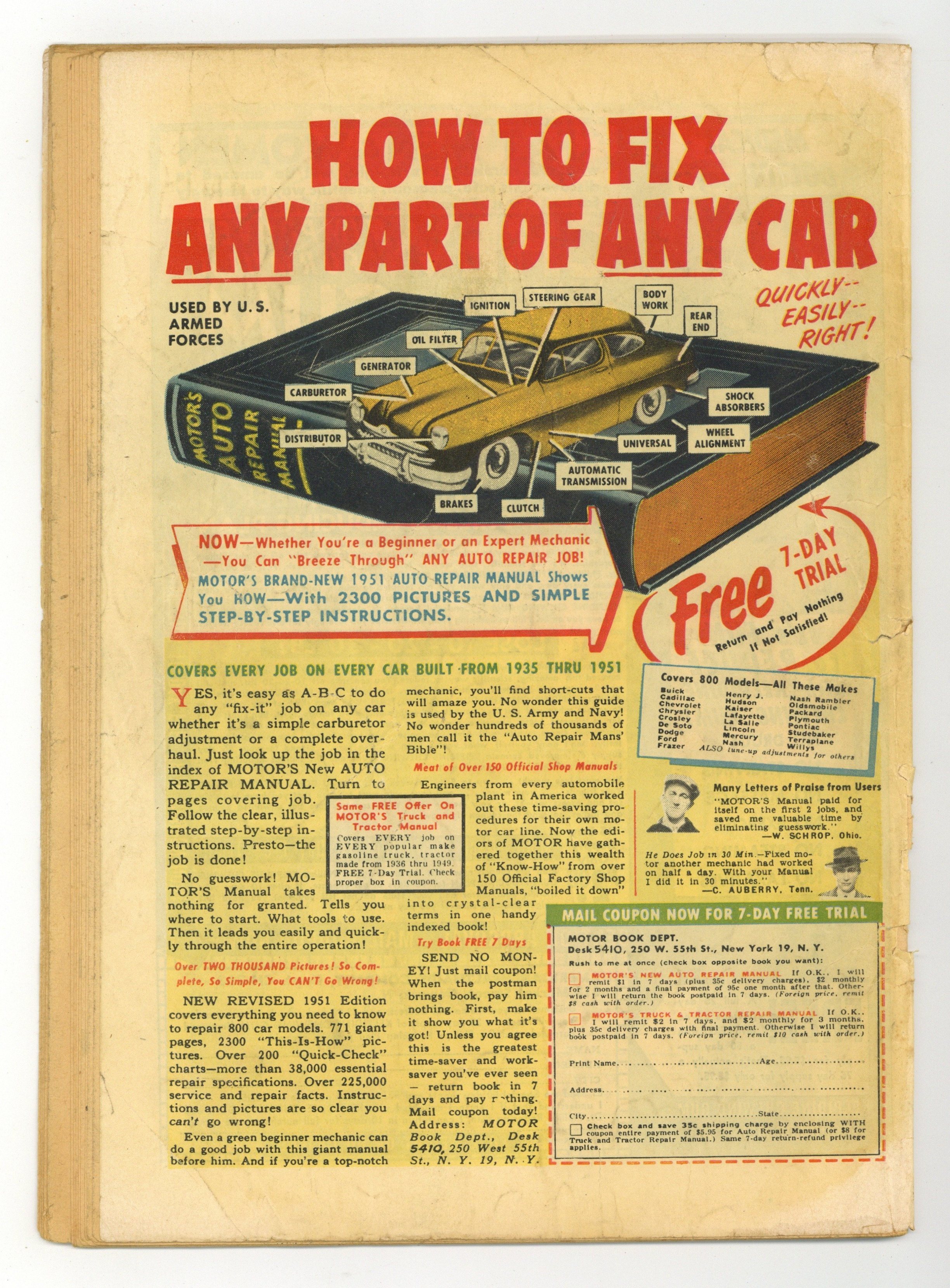 Published Dec 1951 by Realistic Publications.$100.00- Lateral spine tear.
