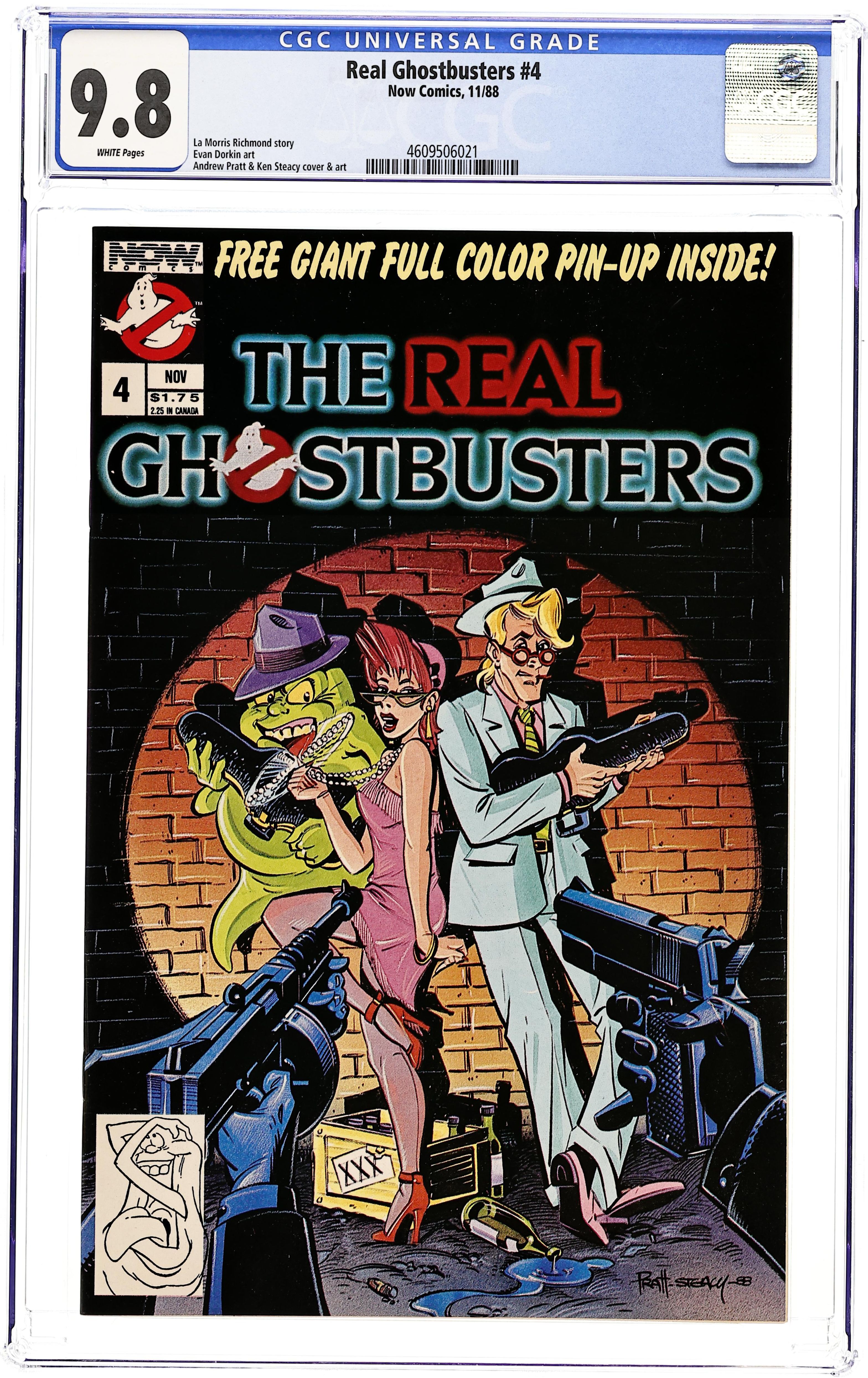 Ghost Gangsters. Story by La Morris Richmond. Art by Evan Dorkin, plus a pinup by Andrew Pratt and Ken Steacy. Cover by Andrew Pratt and Ken Steacy. The official comic adaptation of the popular 1980s cartoon series, inspired in turn by the hit movies. A reporter opens a mobsters long-lost vault on live TV, only to release the ghosts of a rival mob, who then begin a ghostly crime spree across their old haunts, including a childrens hospital! 32 pages, Full Color. Cover price $1.75.