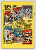 Stories and art by George Carlson, Emanuel Demby, and Stephen Douglas. Kids' comics featuring the whimsical fables of beloved artist George Carlson, praised by Harlan Ellison as a "comic of the absurd." A Fisherman's Smart Son and a Rich Lumbago have adventures in a land of delightful nonsense. Timid Mr. Lamb is rescued from jeopardy when his more assertive shadow comes to life. Prince Dimwitri, The Pie-Faced Prince of Old Pretzleburg, sets out to free Princess Panatella Murphy from the Witch's Tower. Jingle Jangle Tales: The Calico Fisherman and the Left-Handed Clay-Pipe; Bingo's Frolics in Fairytale Land; The Friendly Fox; Hortense the Lovable Brat; The Pie-Face Prince of Pretzleburg; Mr. Lamb the Lion Hearted; Bees-Ness Trouble; Benny Bear's Vacation. 68 pages, Full Color. Cover price $0.10.