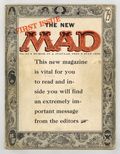 Cover art by Harvey Kurtzman. Published by William Gaines and edited by Harvey Kurtzman, Mad Magazine #24 begins a new era, parodying various elements of life, including popular culture. Previously, Mad was a comic book. "Extremely Important Message From The Editors," script and art by Harvey Kurtzman; Message is, "Please Buy This Magazine." "She Wanted To Drown Her Troubles," art by Wally Wood; Phony ad for movie "Gluggle!" "Is A Trip To The Moon Possible?", script by Harvey Kurtzman, art by Wally Wood; A humorous look at the problems and joys of travel to the moon. "Report From Russia" article by Hans Christian Andersen; A supposed look into Russian thought...in Russian (Cyrillic script). "Out of The Frying Pan And Into The Soup" text story by Ira Wallach, art by Bernie Krigstein. "Wrestling," script by Harvey Kurtzman, art by Jack Davis; A humorous look at professional wrestling matches, using all the stereotypes in the sport. Single strip parodies of various newspaper comics, script by Harvey Kurtzman, art by Bill Elder. "Classy Crimes #138: Who Put The Strichnine In Mrs. Murphy's Husband?" text story by Bernard Shir-Cliff, art by Bill Elder. "Anyone Can Build This Coffee Table," script by Harvey Kurtzman, art by Jack Davis; Bogus instructions on how to build a coffee table complete with a potted plant sitting on the table. "Is This Your Life?", script by Harvey Kurtzman, art by Bill Elder; Melvin Furd is nearly killed during the show, which features family, friends, enemies and someone he doesn't even know; Parody of tv show "This Is Your Life." "Vera's Cruz," script by Harvey Kurtzman, art by Jack Davis; Two men sign on to guard a gold and guns shipment, but are also out to steal it for themselves. 68 pgs., B&W. Cover price $0.25.
