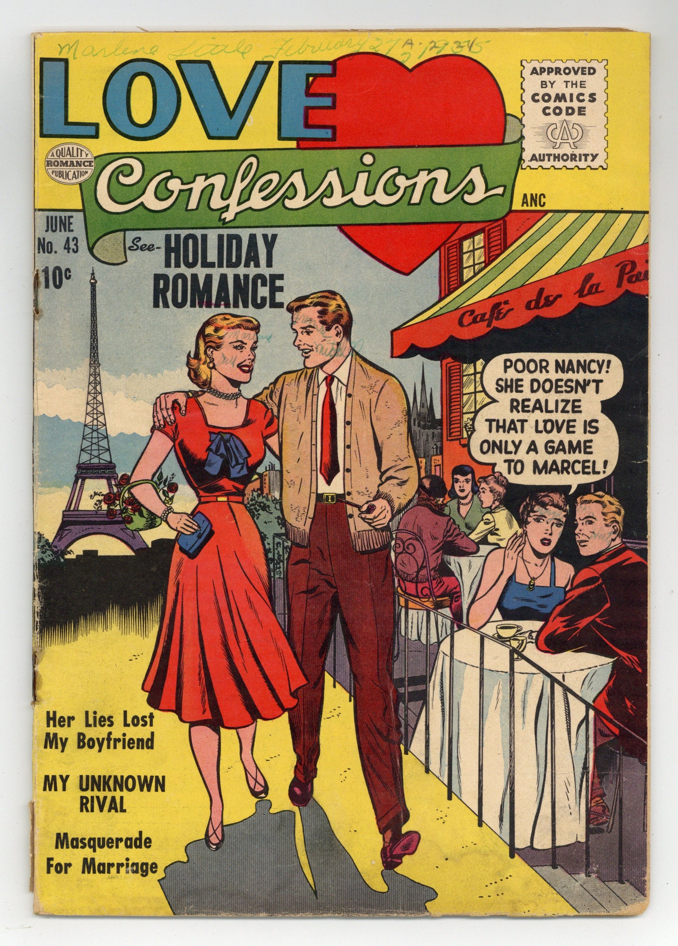 Stories by unknown. Art by John Forte? and unknown. Featuring: "Her Lies Lost My Boy Friend" starring Bob Hunt, Bonnie, Danny Masters, Gloria Dodson and Ted Crane; "My Holiday Heartbreak" starring Captain Andy Elliot, Nancy Dunn, Patty Hegan and Pierre Beauchamp; "Masquerade for Marriage" starring Alma Denton, Madge, Randy Newcomb and Tom Johnson; and "My Unknown Rival" starring Andy Flemming, Betty Elliot, Chuck Flemming, Diana and Kay. Plus: 1-page text story "Love Miser" starring Ed Johnson and Rose. 32 pages, full color. Cover price $0.10.