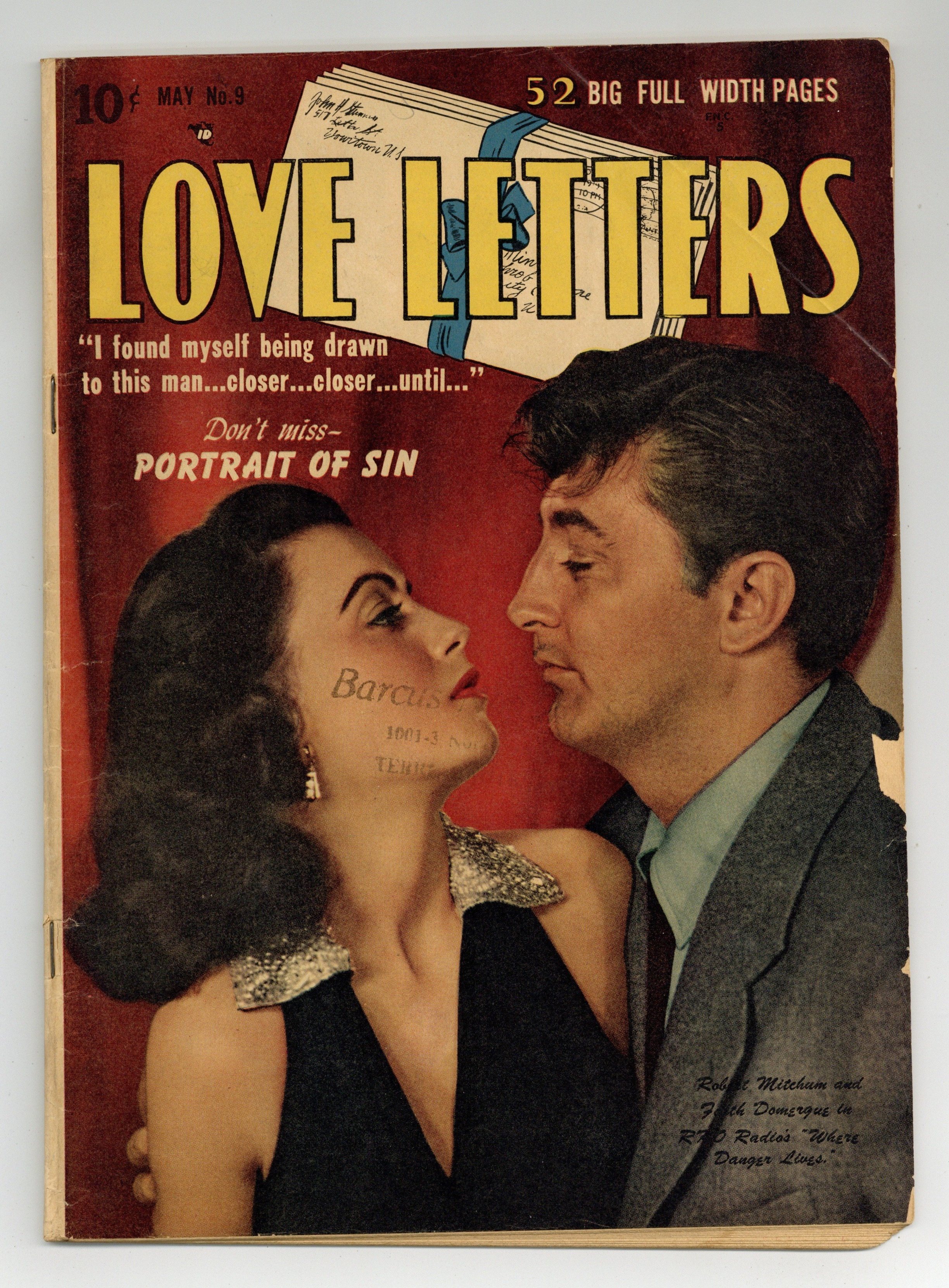 $38.00Photo cover of Robert Mitchum and Faith Domergue from the film Where Danger Lives. Stories by unknown. Art by unknown. Love letters and the revealing tales of the lovers who wrote them! In this issue: "I found myself being drawn to this man...closer...closer...until..." Don't miss "Portrait of Sin"! Plus: "Heartsick Cinderella"; "Cupid's Camera"; "Dutybound to Deceive!"; 2-page text story "Sorry, Wrong Number"; 1-pager "Be Popular with the Opposite Sex"; and "Sweetheart by Proxy"! 48 pages, full color. Cover price $0.10.