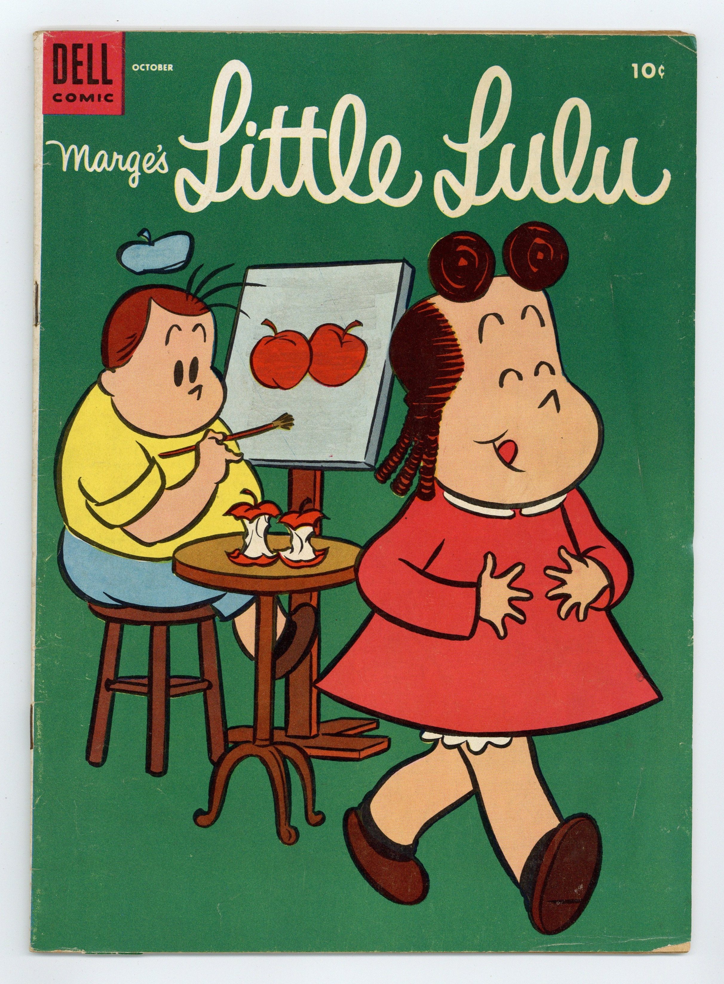 Published Oct 1954 by Dell/Gold Key.$18.00Cat Tale; Lulu tells the Fellers that she can speak cat language. Wild Animal in the House; The wild animal Tubby tells Lulu is in her house turns out to be a sponge. Kissing Game; Tubby tells the Fellers he can get Lulu to kiss him. Ol' Witch Hazel and the King's Beard; Lulu tells Alvin about when Hazel made her cut off the king's beard. Rich Kid; Tubby tries to make Gloria think he is rich. Two-page text story, Lulus Diry ("Diary"). 36 pages, full color. Cover price $0.10.