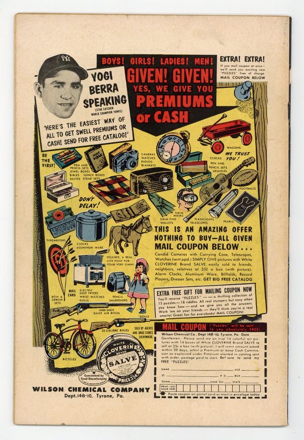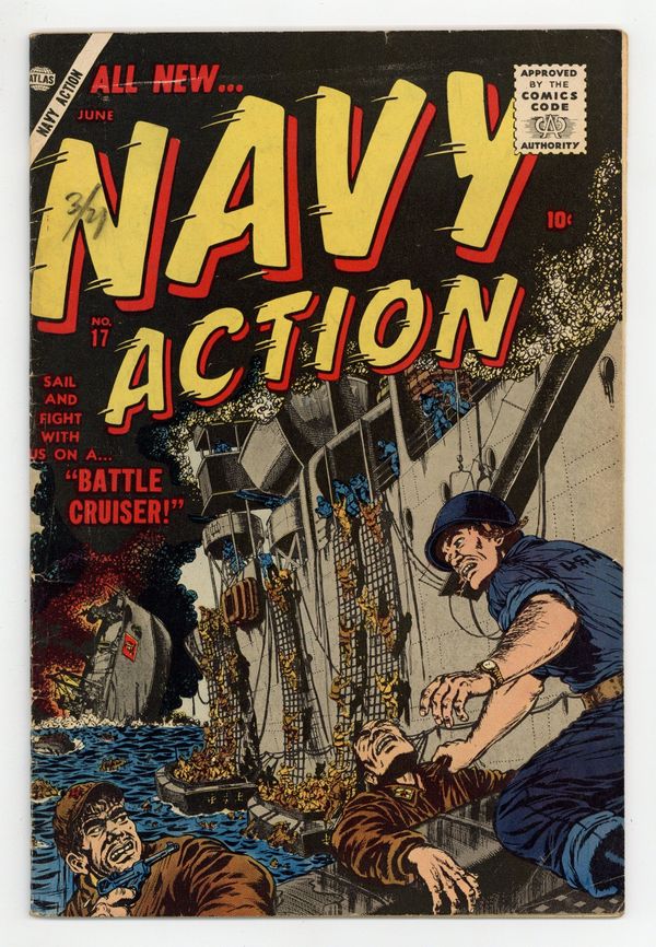 $38.00"Sealed Orders" (art by Paul Reinman), "Battle Cruiser" (art by Gene Colan), "Ack-Ack Alley," "Captured," "Invasion" (art by Mort Drucker), and a two-page text story, "Outnumbered." Bill Everett cover. Cover price $0.10.