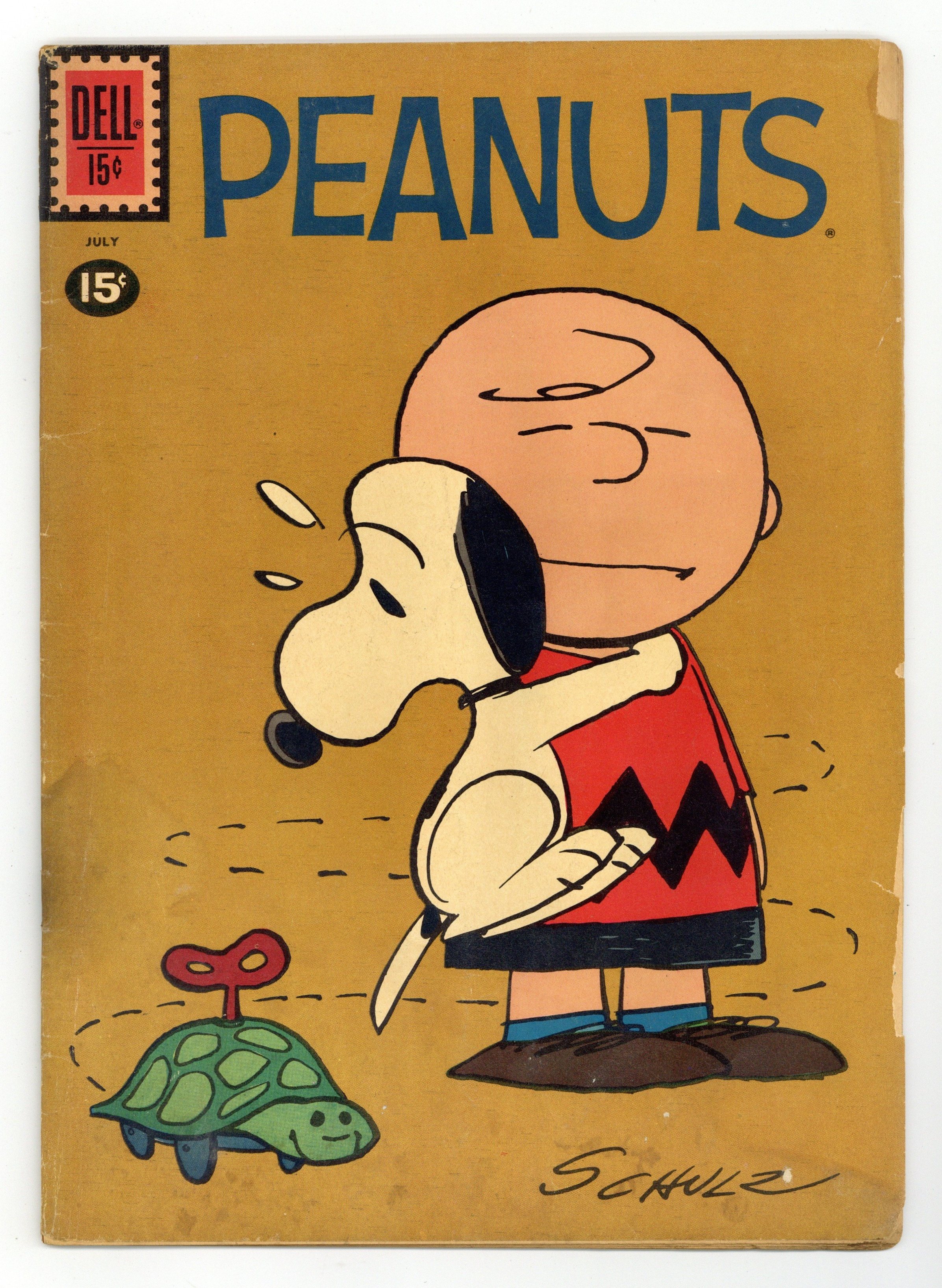 Cover by Charles Schulz. Stories and art by Anthony Pocrnich, Dale Hale and John Stanley. A short-lived series translating Charles Schulz' beloved strip to comic books; Schulz only did the covers, farming out the interior stories to friends and co-workers. Charlie Brown can't believe Lucy wants to use his signed Babe Ruth baseball to play catch. Linus hides when Lucy is looking for him. Linus tries to make extra money by selling newspapers. Plus a Sluggo story (as in Nancy and Sluggo) written by Little Lulu legend John Stanley. The Foul Ball; Nancy and Sluggo: Surprise Picnic; The Candy Bar; Profit-Tears; The Growing Boy; Dog Gone Happy; Tasty TV; Self Made Man. 32 pages, Full Color. Cover price $0.10.