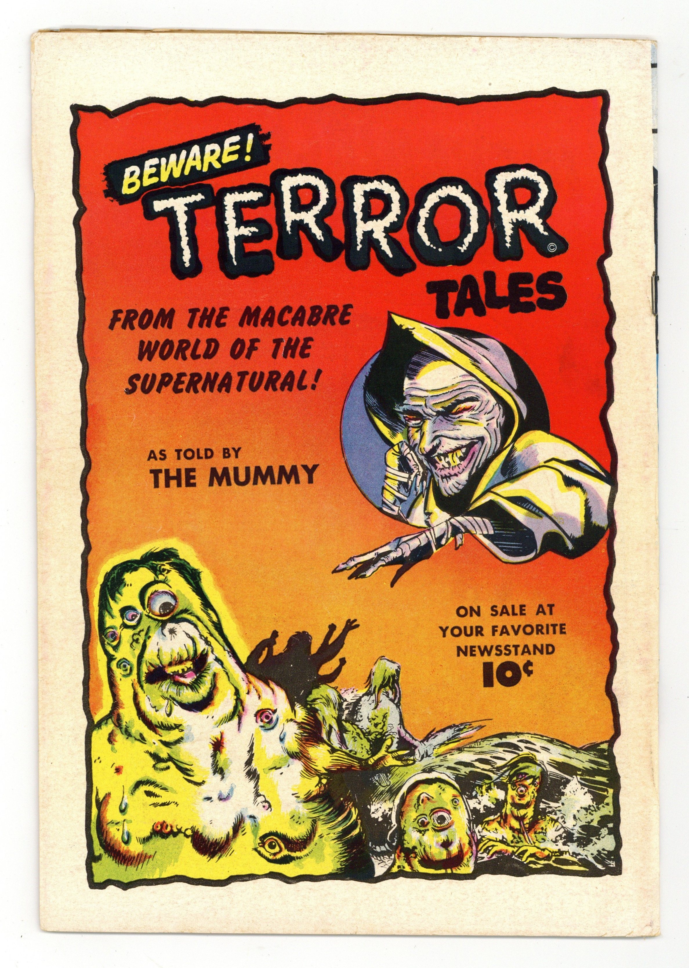 Edited by Will Lieberson, V.A. Provisiero and Al Jetter. Stories by unknown. Art by Leonard Frank, Shelly Moldoff and unknown. Horror tales that are so scary they could only lead you to believe that This Magazine is Haunted! In this issue: Photographer Arne Hunter comes into possession of a camera able of taking pictures of ghosts. Investigating this, Hunter detects an unsolved murder case and endangers his own life in "The Man Who Saw Too Much" with art by Leonard Frank. Plus: Manuel Sabata wants to be the greatest bull fighter of all times. While plotting against his rival, he is forced by death himself to make a final stand at a fatal corrida in "Toreador of Death!" with art by Shelly Moldoff. And: Peter Akroyd entertains guests at his summer house by telling them horror stories about the demon "Karzz." To his surprise Karzz appears after a murder has been committed in "The Grim Unreality"! Also: 2-page text story "Curse of the Seal Men" written by Richard Kraus, and ads for Strange Suspense Stories and Terror Tales. 36 Pages, Full Color. Cover price $0.10.