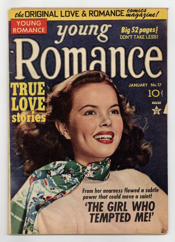 #17 on cover; Vol. 3 No. 5 in indicia. Photo Cover of Alice Ann Kelly, Warner Bros. Starlet, by Carlyle Blackwell, Jr. Stories by Jack Kirby? and unknown. Art by Jack Kirby, Lee Elias?, Bill Draut, Bruno Premiani, Joe Simon and unknown. From her nearness flowed a subtle power that could move a saint! Don't miss..."The Girl Who Tempted Me!" Also featuring: "I Want Him Back!"; "When a Puppy Love Grows up!"; "Love's little Teacher!"; 2-page Nancy Hale's Problem Clinic story "[Man-Stealer]"; and 1-page Charmaine story "Glamor Can be Yours"! Plus: 2-page text story "Love Trouble"! 48 pages, full color. Cover price $0.10.