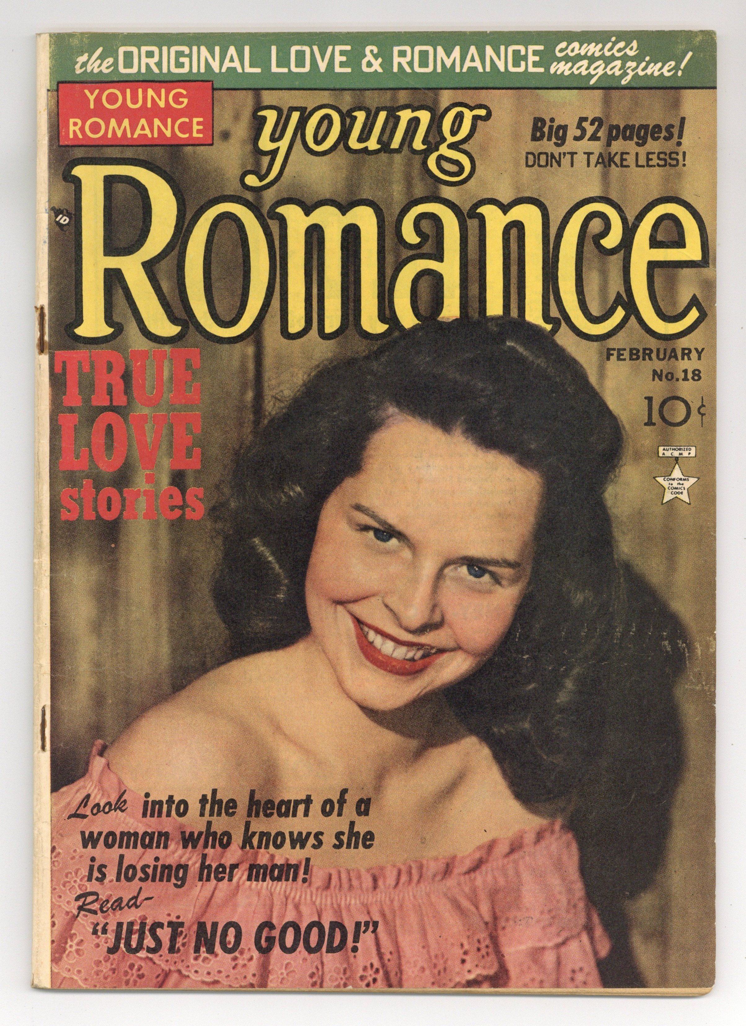 #18 on cover, Vol. 3 No. 6 in indicia. Photo Cover of Dona Hughes by Theda and Emerson Hall. Stories by Jack Kirby? and unknown. Art by Jack Kirby, Bill Draut, Mort Meskin, Joe Simon and unknown. Look into the heart of a woman who knows she is losing her man! Read..."Just No Good!" Also featuring: "Make Believe Lover"; "I Own this Man!"; "Mother Tags Along!"; and 2-page Nancy Hale's Problem Clinic story "How to Tell the Right Man!" Plus: 2-page text story "Flight from Love"! 48 pages, full color. Cover price $0.10.