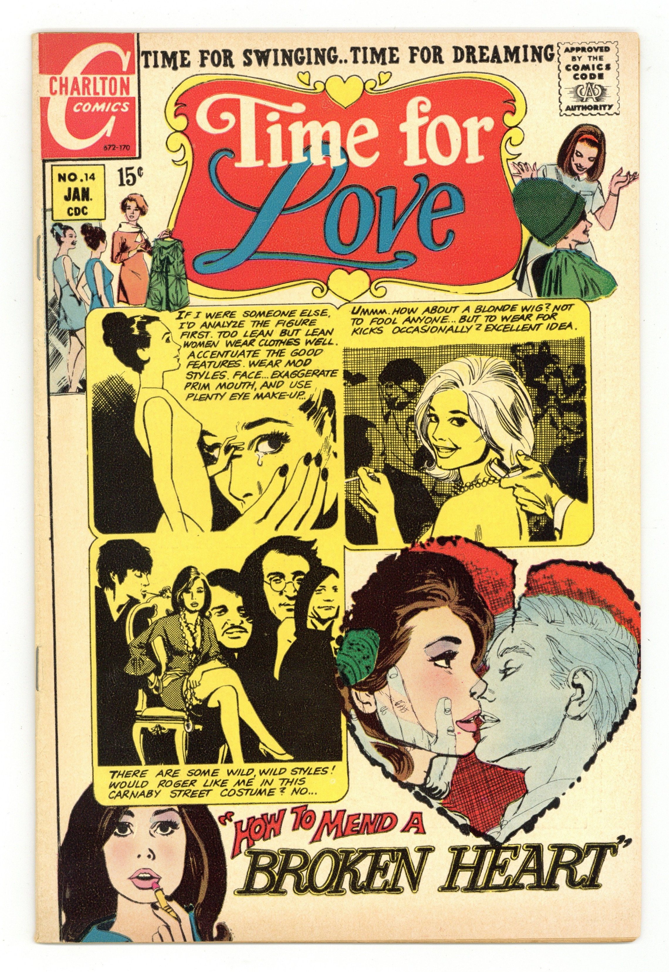 Published Jan 1970 by Charlton Comics Group.$45.00Cover by Jose Luis Garcia-Lopez. Stories and art by Jose Luis Garcia-Lopez, Bill Montes, Vince Colletta, Charles Nicholas, and Vince Alascia. Couples navigate the mazelike pathways of relationships and love in the 1960s and '70s. After giving him the cold shoulder on the slopes, Prudence finally tells ski bum Neil why she only wants to marry a rich guy. A woman decides to reinvent herself to see if she can win Roger back, or at least get over him. Plus romantic advice from the 1960s. Anothers Love; Love Comes Later; Canteen Corner; How to Mend a Broken Heart! 32 pages, Full Color. Cover price $0.15.