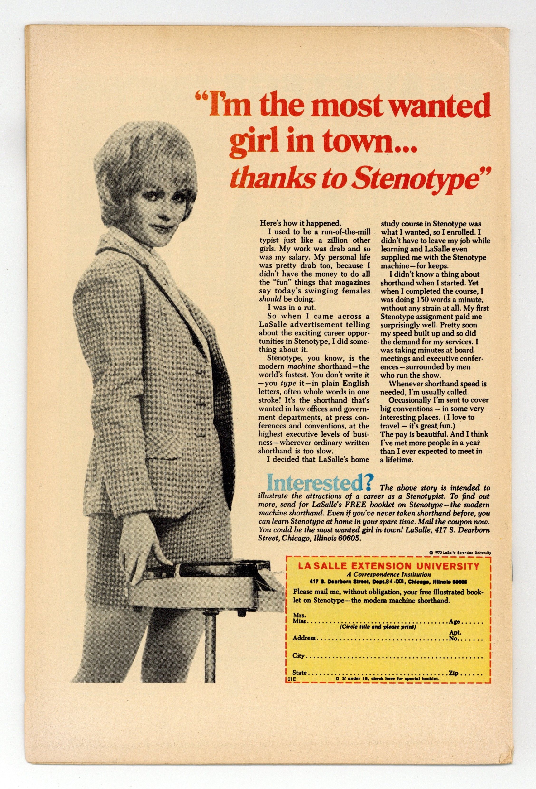 Cover by Art Cappello. Stories and art by Joe Staton, Tony Tallarico, Nicky Zann, Art Cappello, Charles Nicholas and Vince Alascia. Couples navigate the mazelike pathways of relationships and love in the 1960s and '70s. Helen and Art must travel thousands of miles to be together, and even then, they're not sure if they're free from her wealthy, powerful stepfather. When she gets suspicious of all the time fiance Alan is spending in France, a woman decides to make a trip to Paris to see what's up. A redheaded woman learns that handsome cop Pat has been looking out for her when she gets attacked on the street. Plus a pinup of '70s teen heartthrob Bobby Sherman, and a one-pager with art by E-Man co-creator Joe Staton. Pat's Pet; Good-Bye Darling; So Far Away, My Love; Teen-Age Troubles; He Doesn't See Me!; The Cop-Out. 32 pages, Full Color. Cover price $0.20.