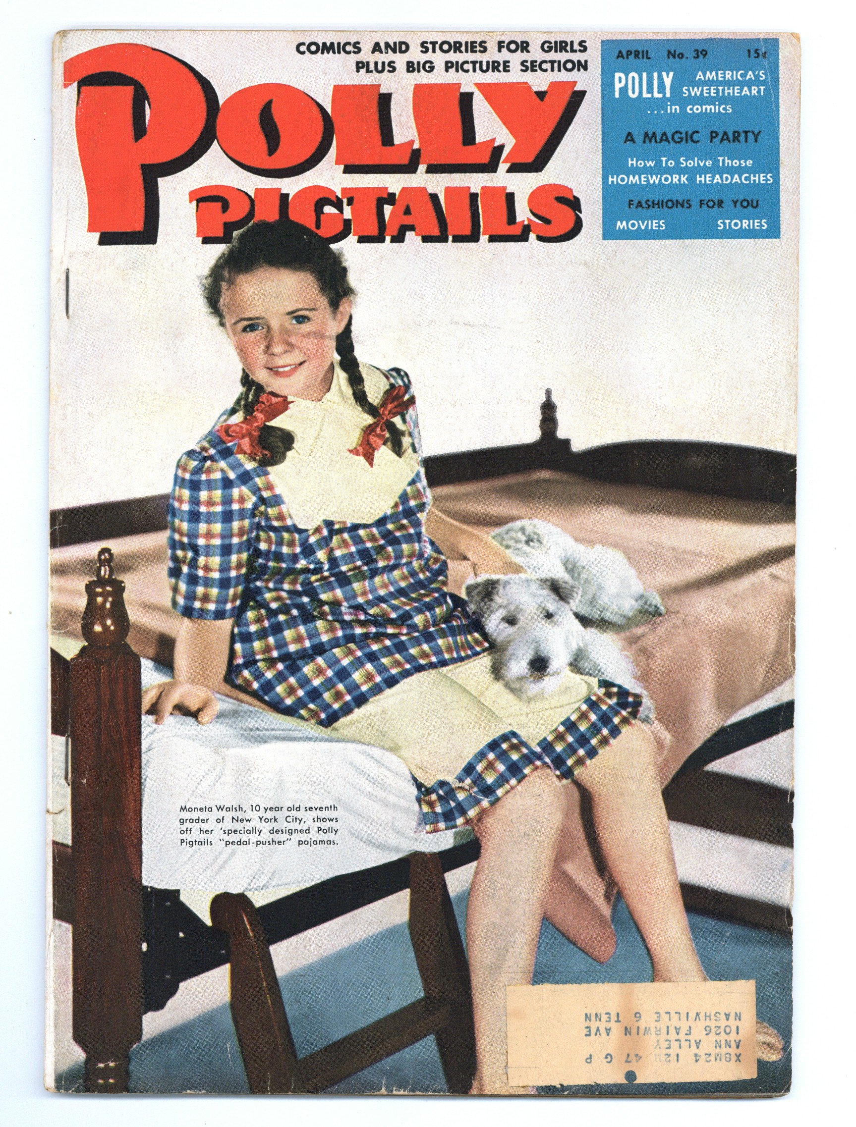 Published Apr 1949 by Parents' Magazine.$16.00Cover photo by Leigh Charell. Stories and art by Vic Herman, Jane Ellin Prescott, Mickey Klar Marks, Ellin Jaynes, Marguerite Aspinwall, Lois Withers, Pearl Wells, M. Hodge, Kay Wambold, Patti Cooke, Elise Gibbs, and Marie Cummings. A magazine for girls from the producers of Parents' Magazine, with stories, fashion and advice as well as comics. A profile of the Ada Foster School for young actors in London; Tizzie gets into a prank war with her friends on April Fool's Day; Magic tricks for parties. Polly Pigtails; Blossom Out in Cotton; Tulip Time in Holland, USA; That Special Day; Tizzie's Monkey Business; Me, Myself and I; Belles on Their Toes; The Secret in Stone; Hobbies; April Frolic; It's Magic; Pin Money Pals; Polly and the Toy Princess; Pigtailers Talk Things Over; Polly Prefers; Needle Play; Club News; Polly in the Kitchen. 52 pages, Full Color. Cover price $0.15.