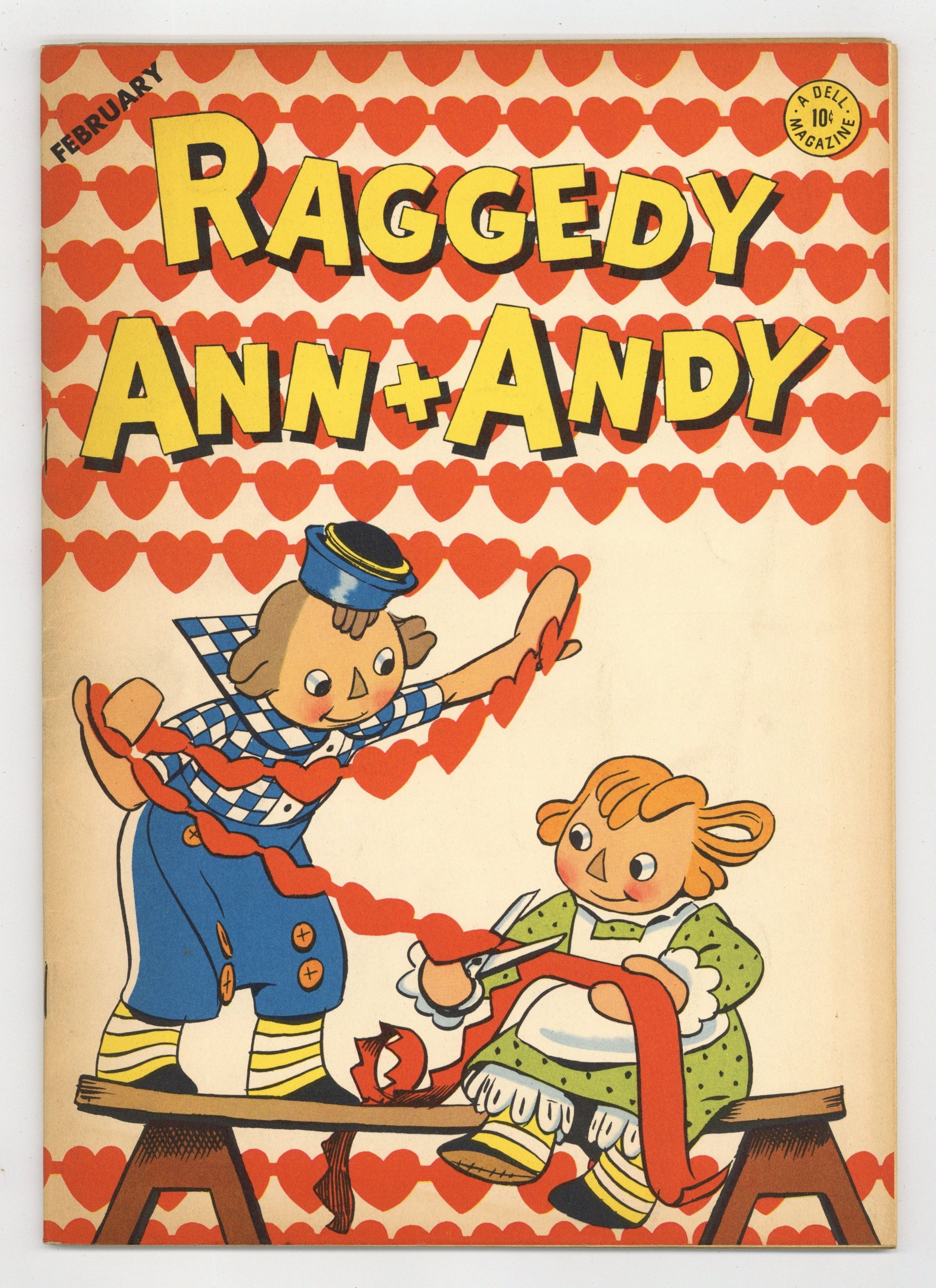 Cover by George Kerr. Stories and art by Walt Kelly, George Kerr (credited as Johnny Gruelle), W.J. Enright, Frank Jupo and Dan Noonan. Johnny Gruelle's famous doll characters have adventures and learn lessons, featuring early art from Walt Kelly. Legendary Pogo artist Walt Kelly adapts Mother Goose nursery rhymes, including Peter, Peter, Pumpkin Eater and Tweedle Dum and Tweedle Dee. An old woman grants three wishes to a woodcutter's son and daughter. Donot Inflate, the penguin, doesn't know what dragons are. Plus activity pages and "nonesuch" animals and a rhyming PSA for the March of Dimes. Raggedy Ann: The Raggedy Animals Return; None-Such Animals: The Glunk; Egbert Elephant and His Friends; The Raggedy Way; Mother Hulda; Billy and Bonny Bee; Animal Mother Goose; Schlaraffia. 48 pages, Full Color. Cover price $0.10.